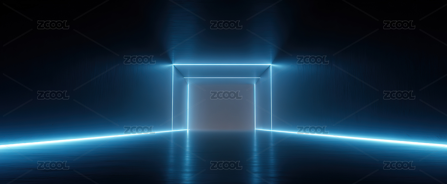 蓝色霓虹光框的未来感空间