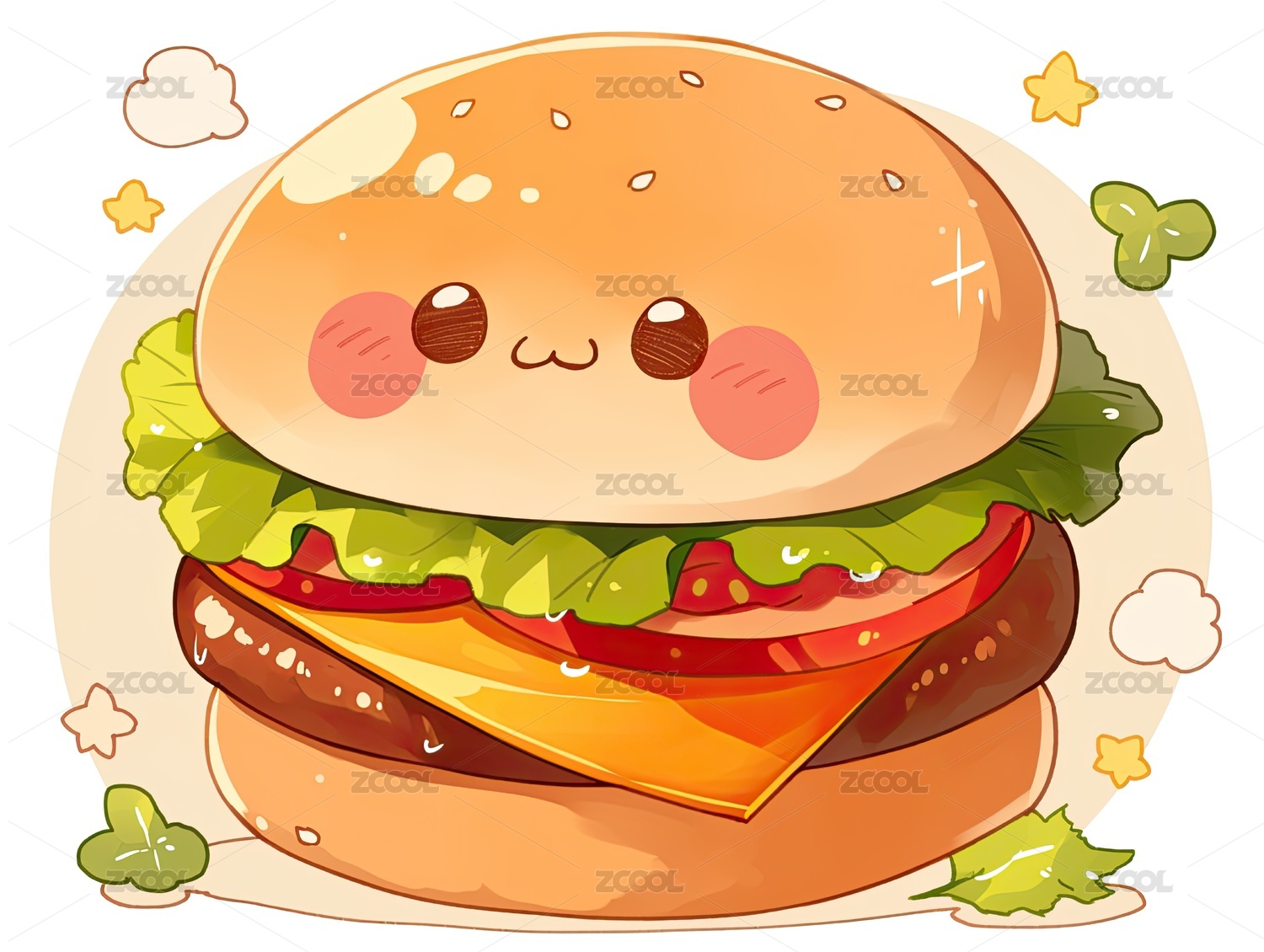 早餐桌面盘中夹蔬菜火腿的三明治3插画绘画