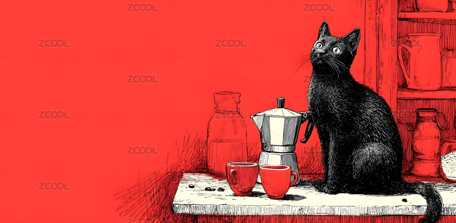 黑猫清晨喝咖啡