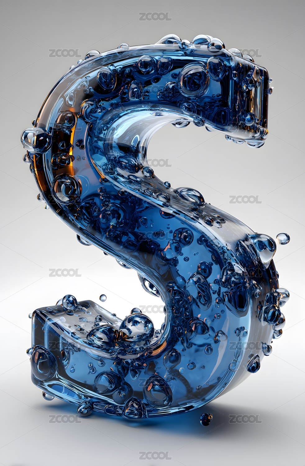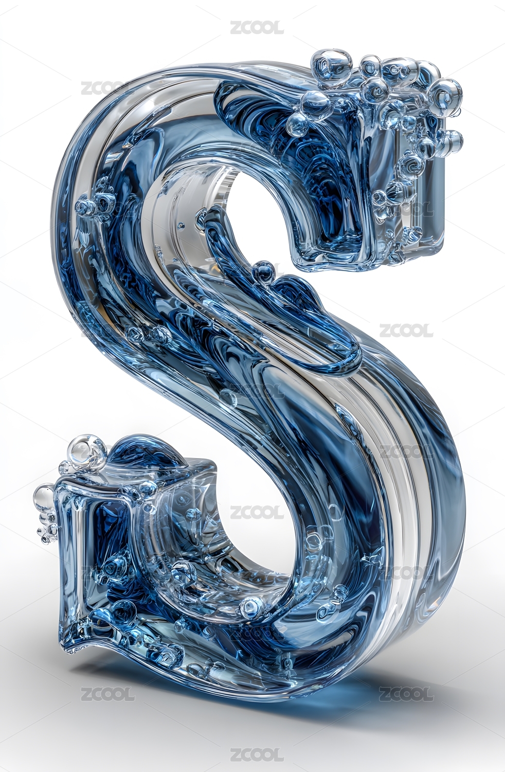 晶莹剔透蓝宝石字母S 光影交错艺术感
