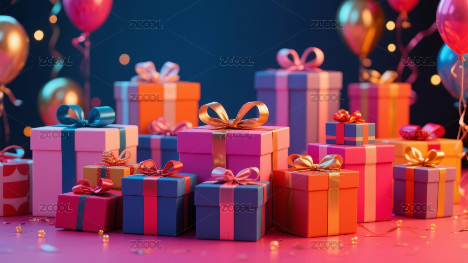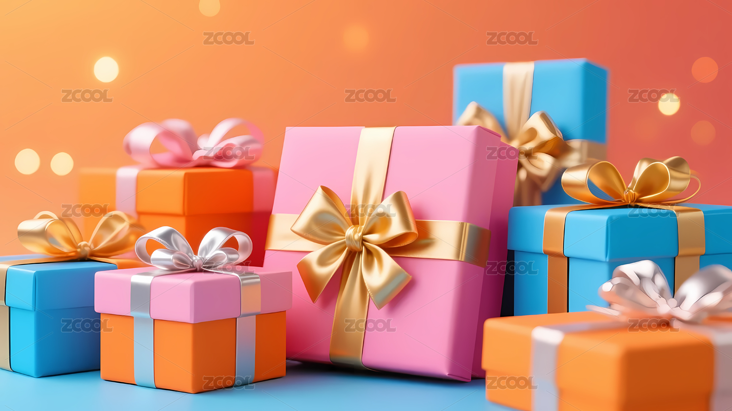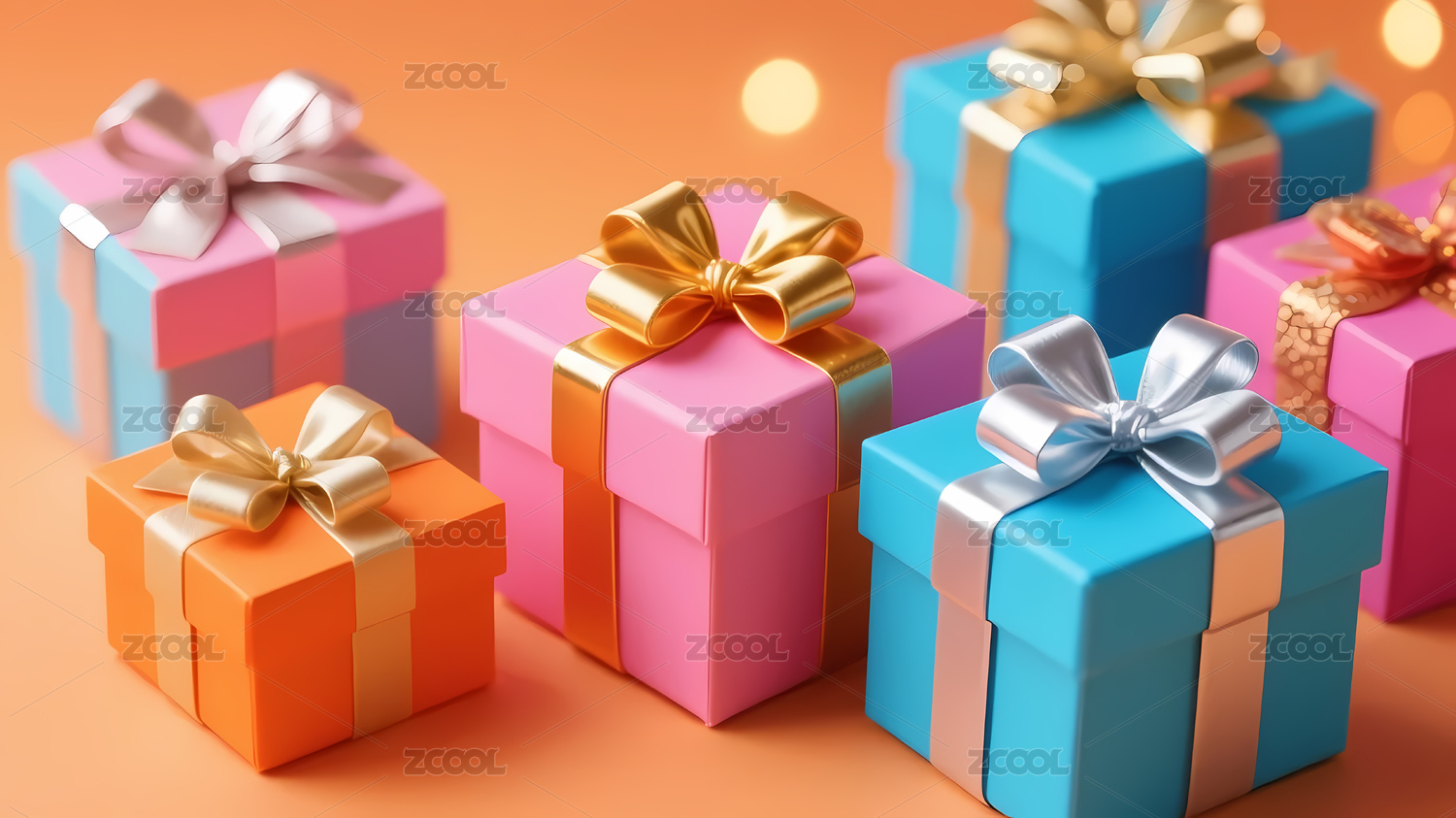 金色,蓝色,渐变,橙色,银色,光斑,礼物,盒子,蝴蝶结,粉色