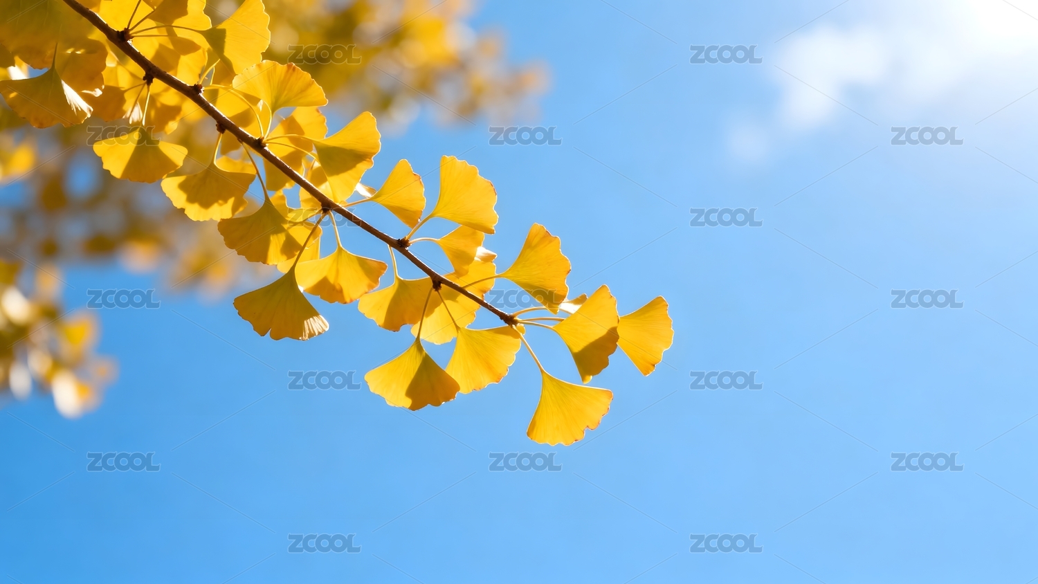 植物,蓝天,明亮,自然,户外,黄色,清新,树枝,银杏叶,秋日
