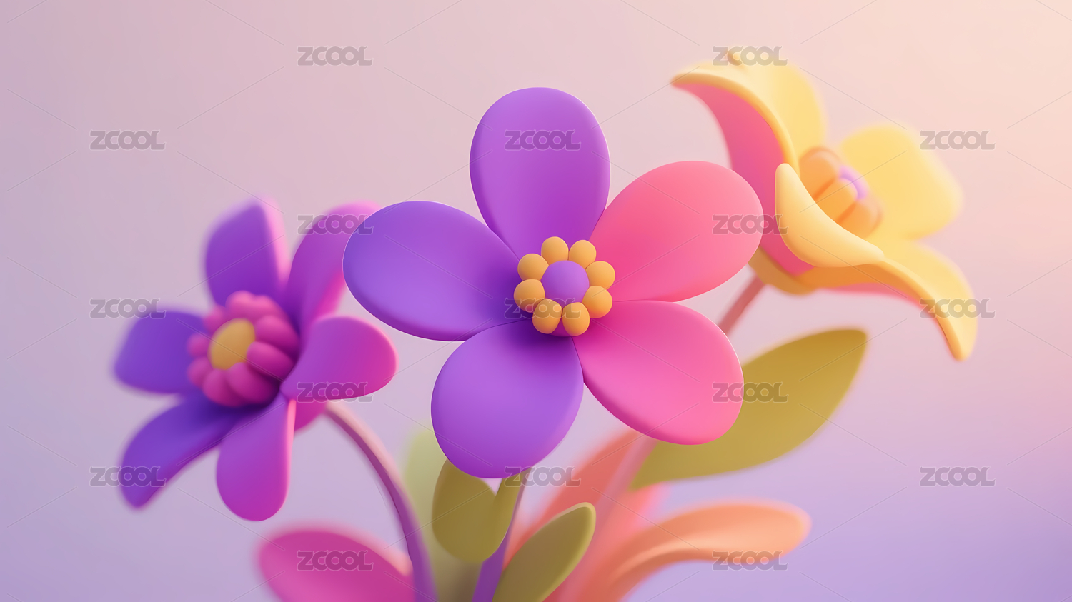 3d花卉工艺壁纸橙色绿色黄色花朵概念插图