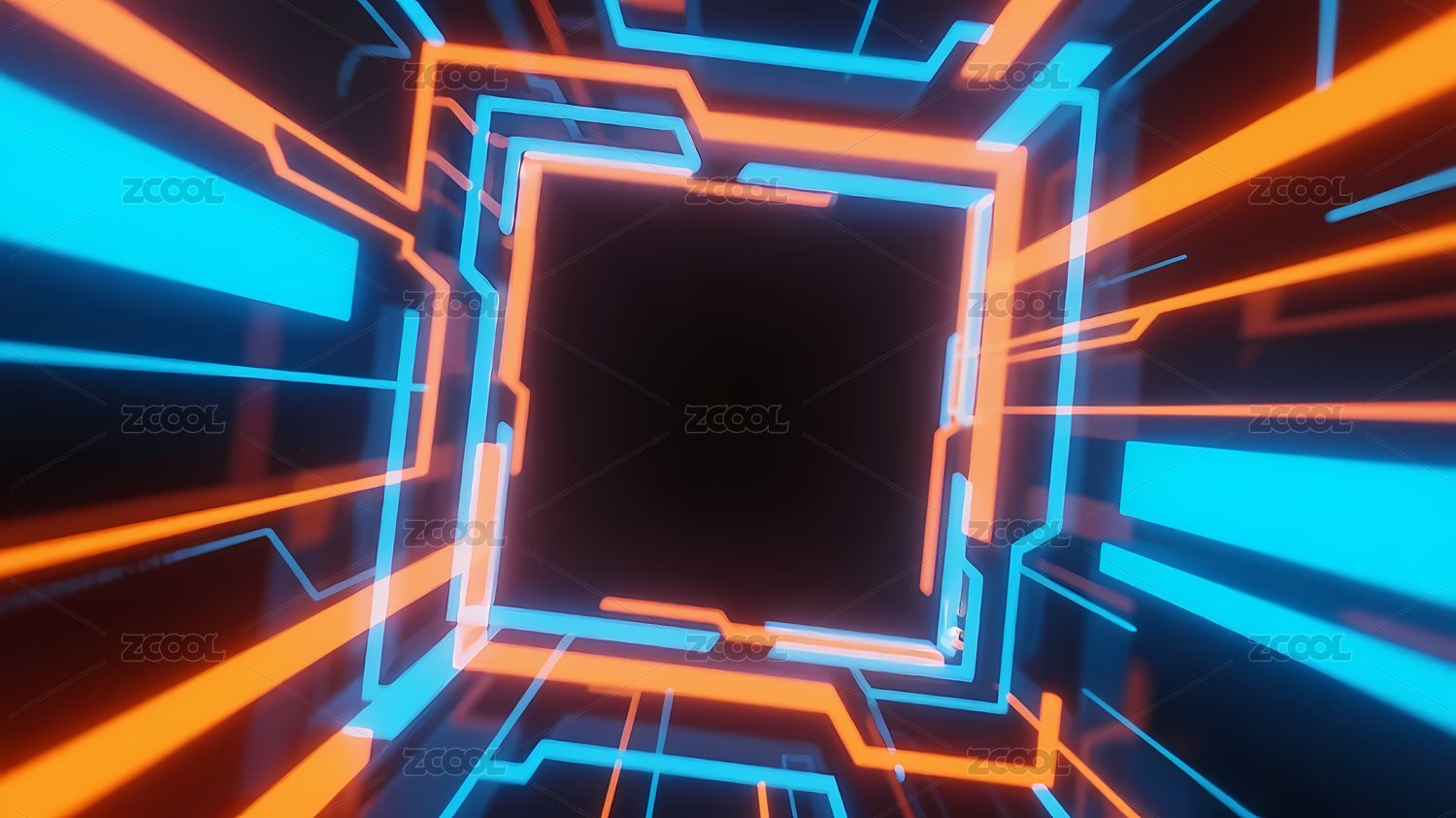 橙蓝立方体科技隧道视觉