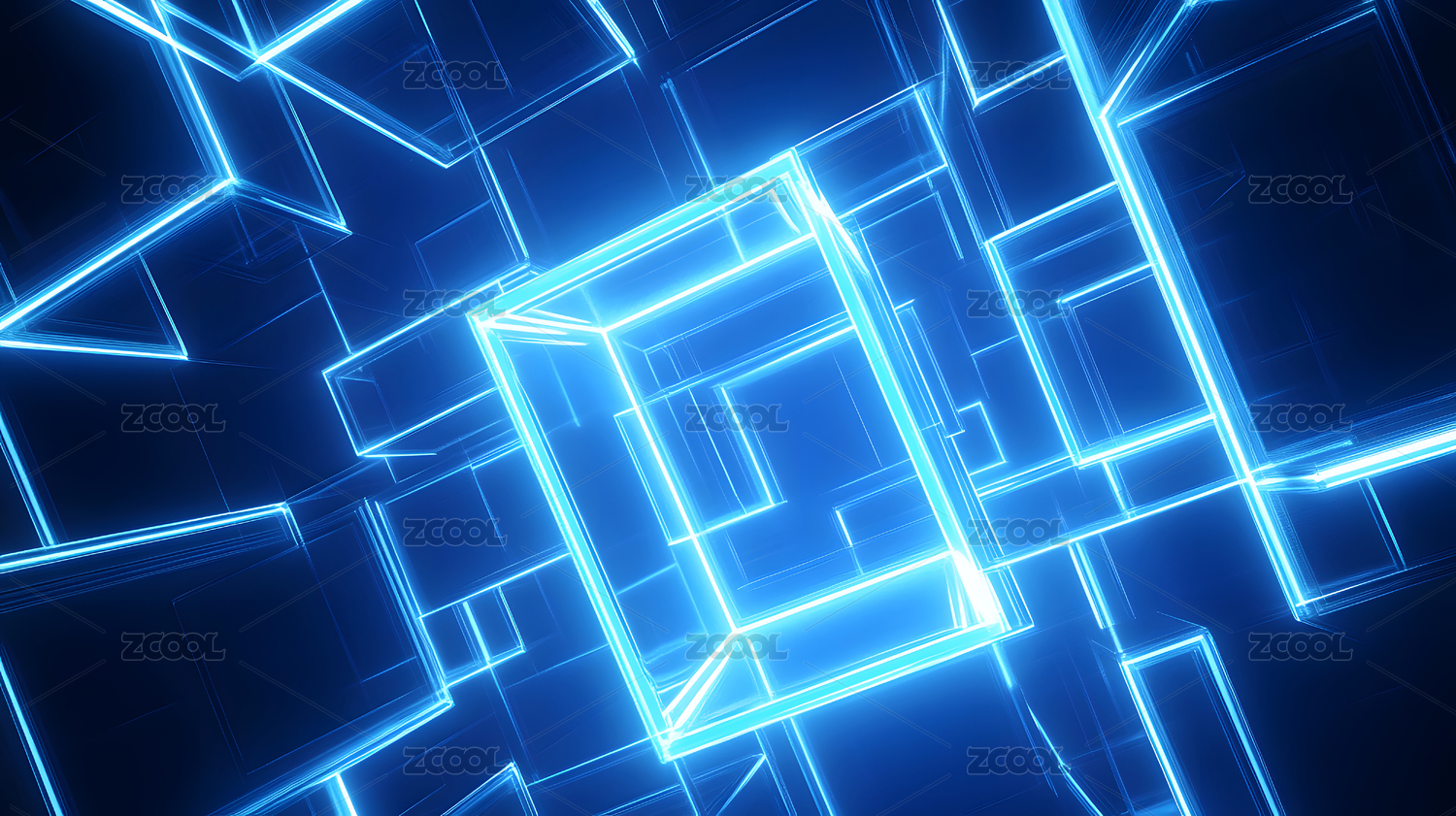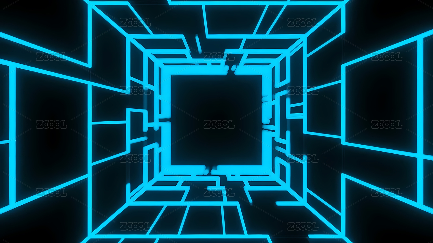 蓝色霓虹几何隧道