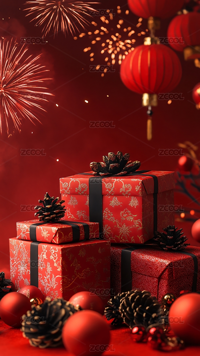 新年元旦元宵节日高级礼物礼物盒电商海报
