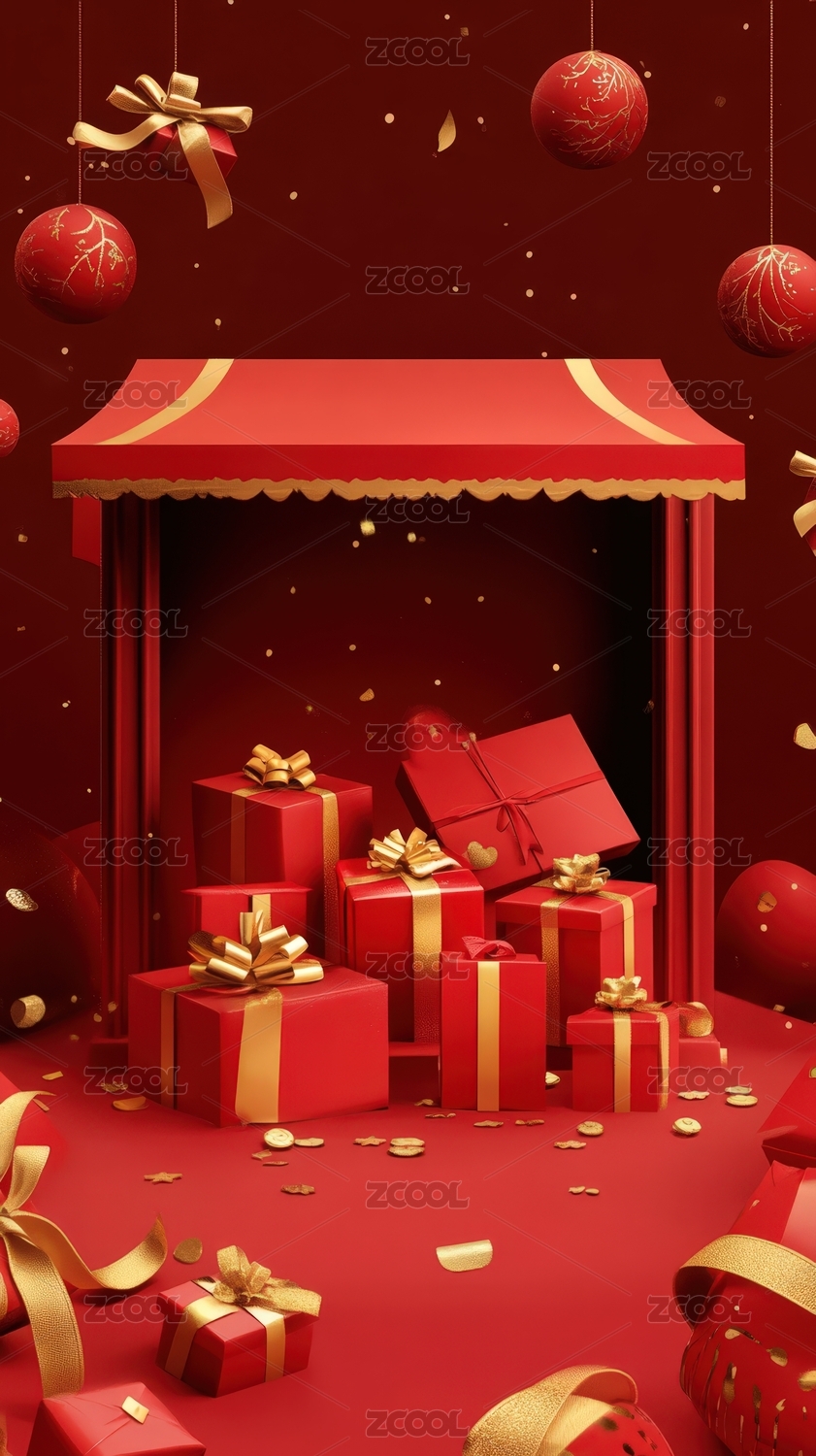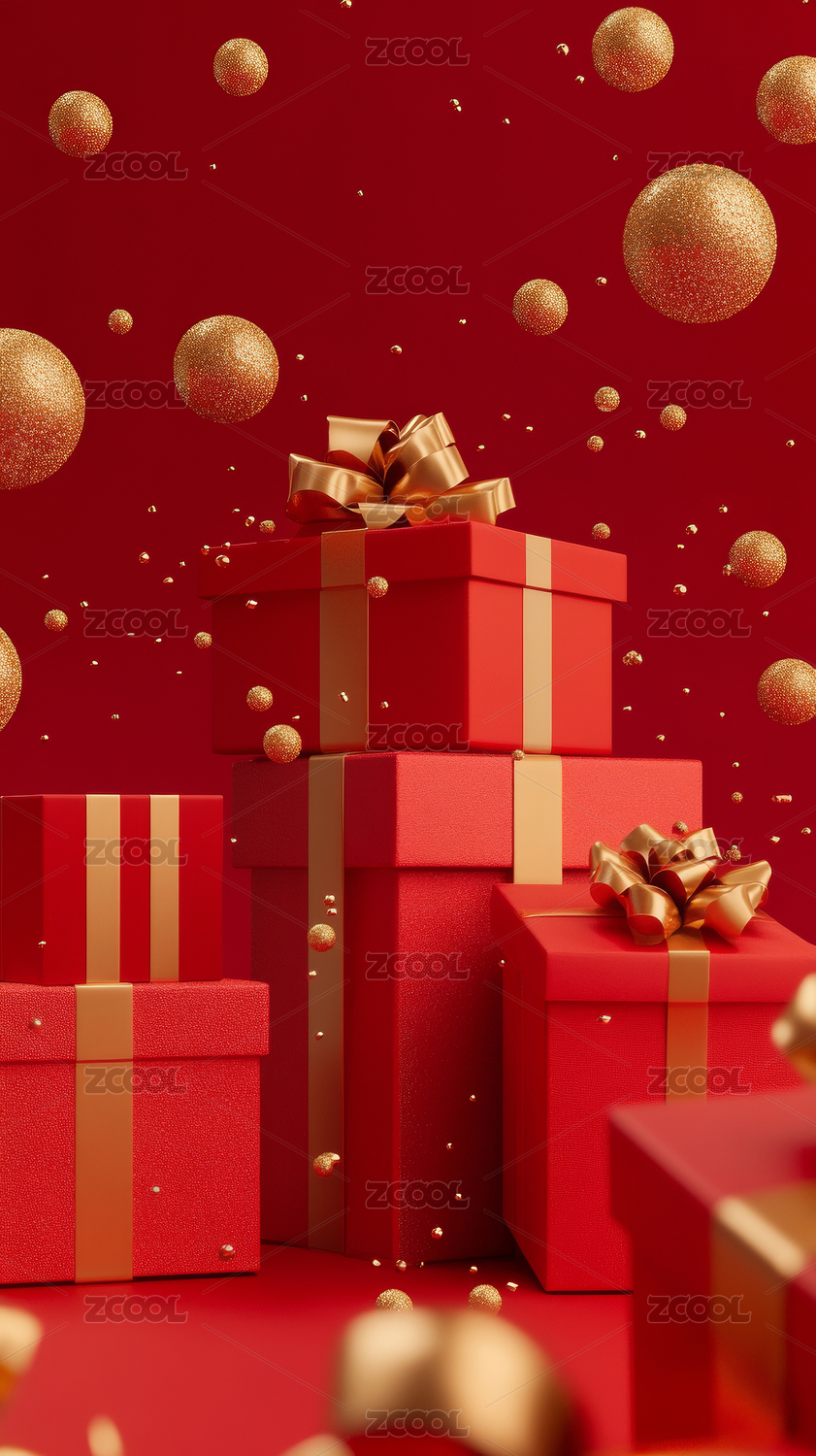 喜庆新年礼物场景