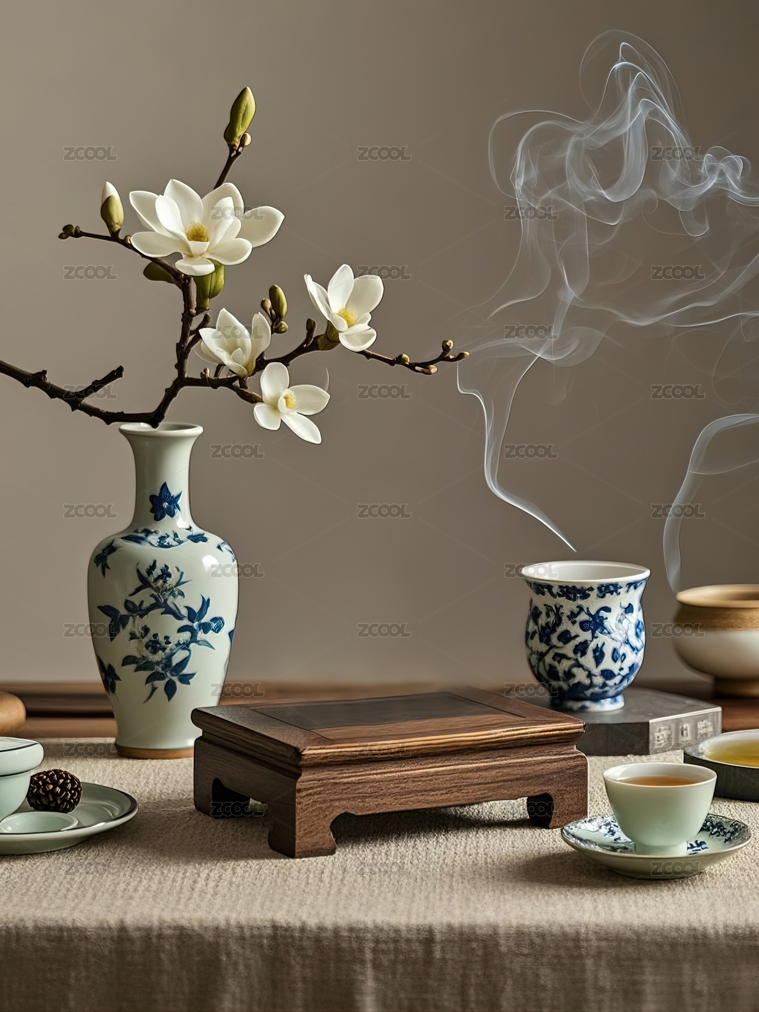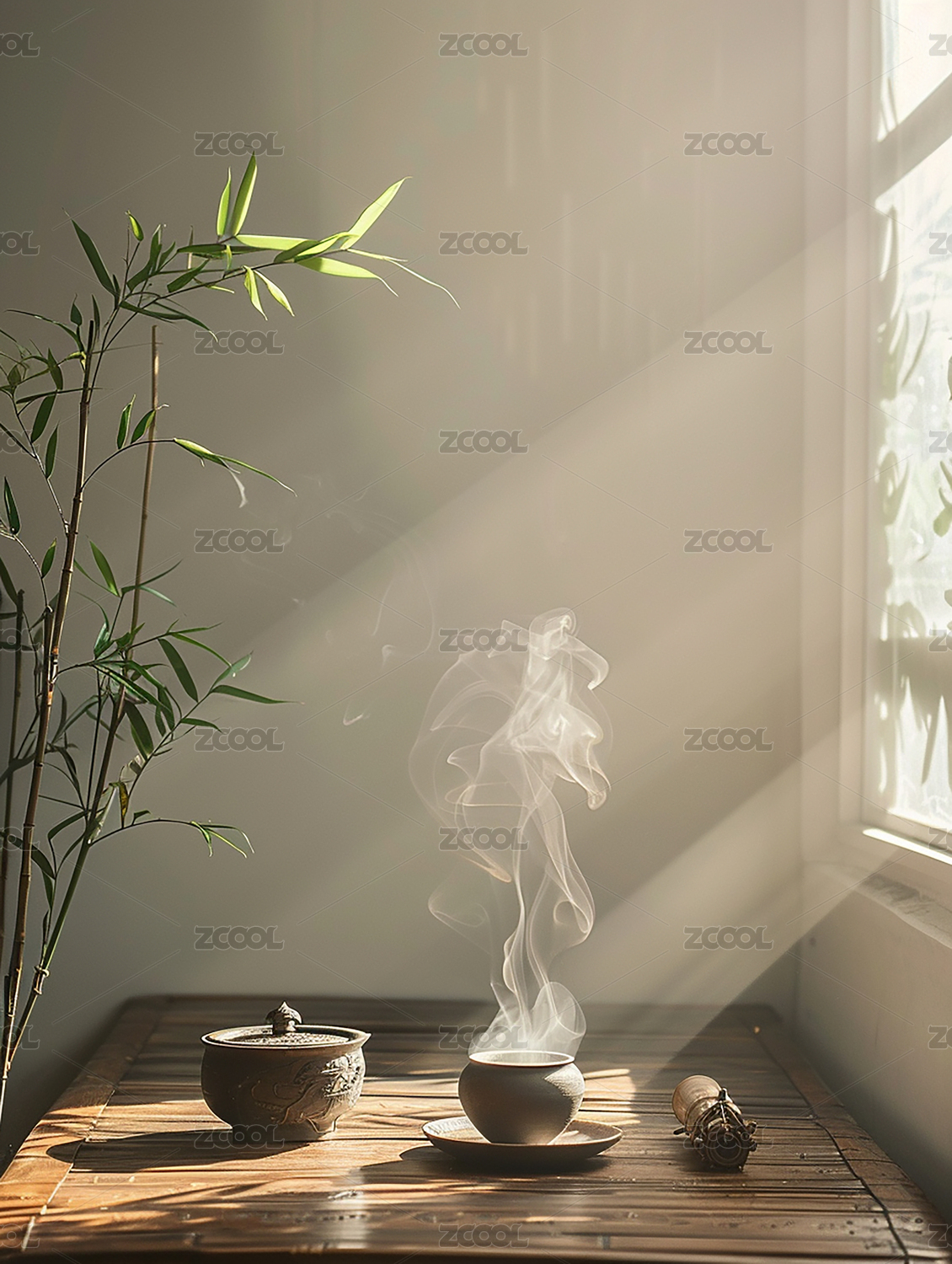 茶室午后温茶轻烟