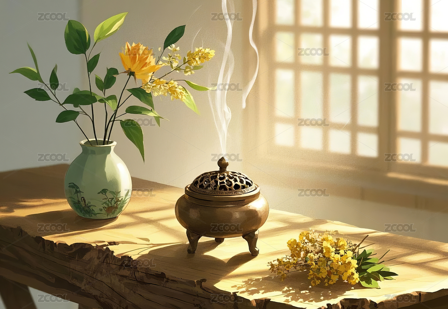 中国风香炉场景