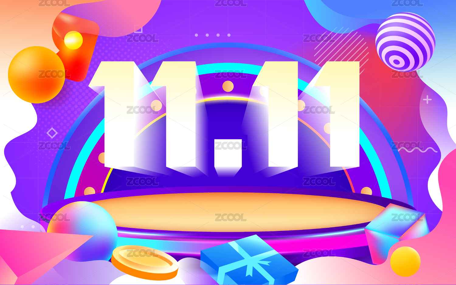 霓虹风格双11电商展台插画