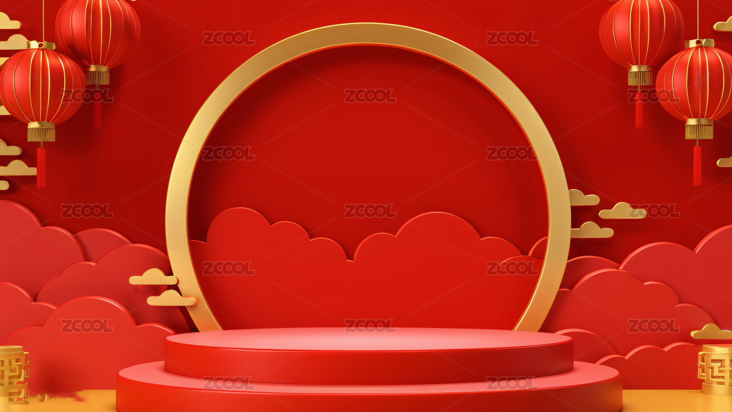 中式红背景节日展示场景图
