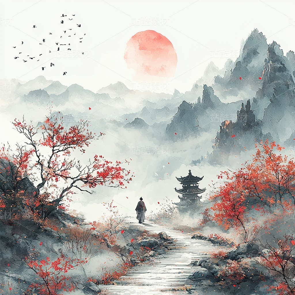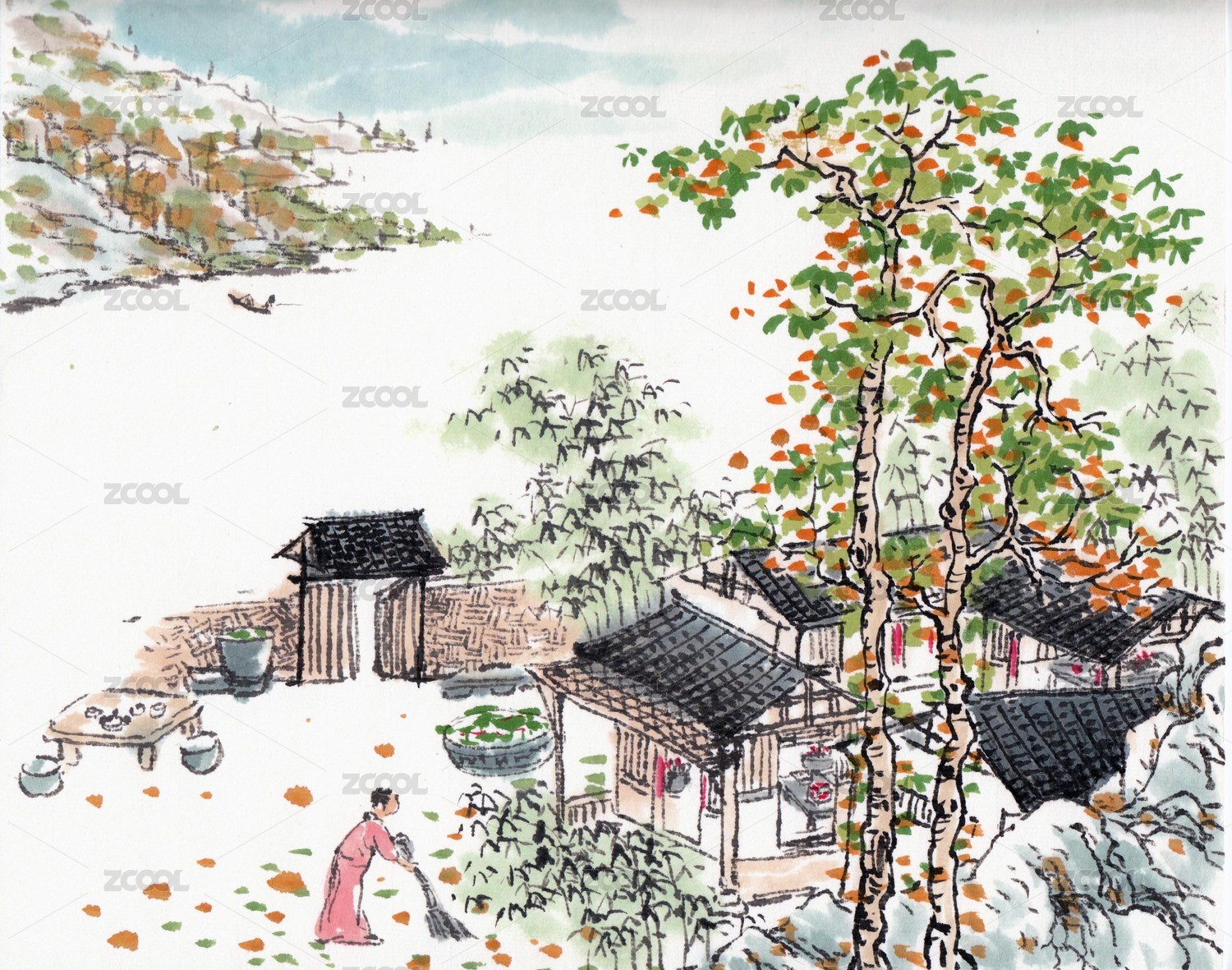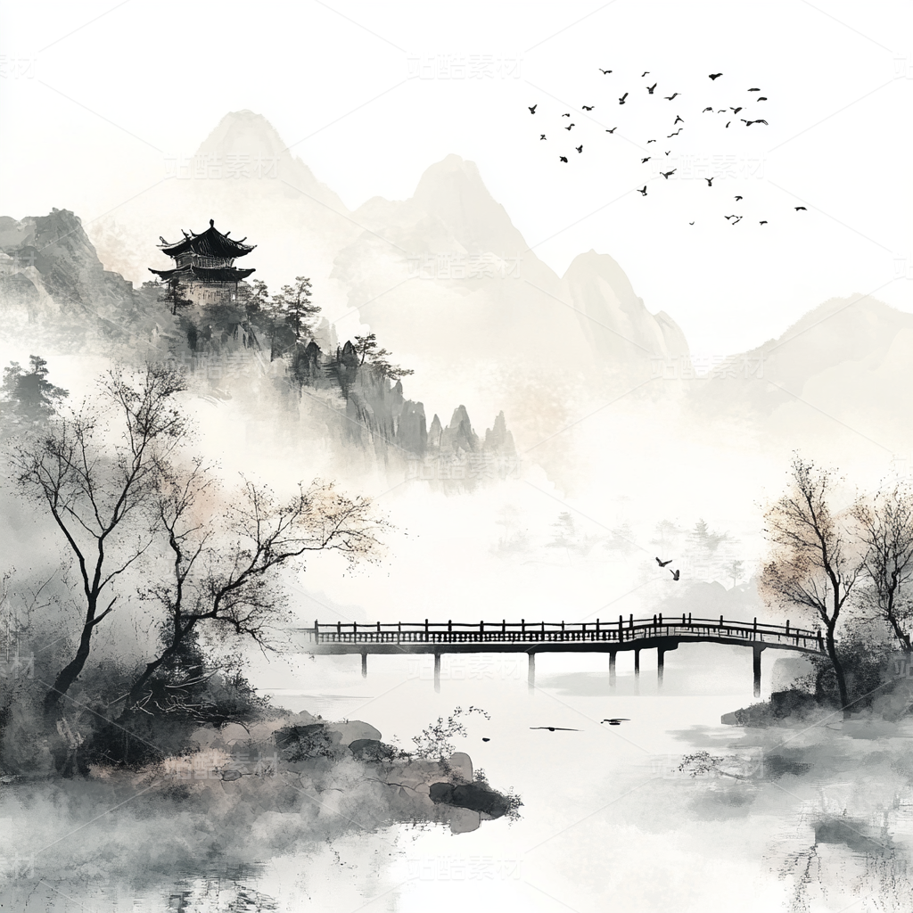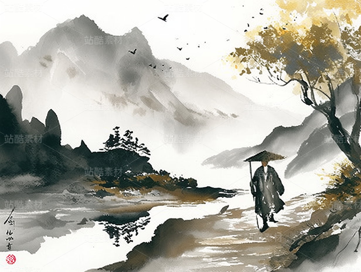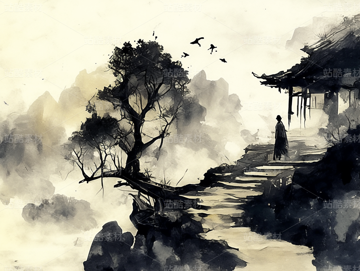 水墨中国风毛笔画国画图片素材工笔人物山水