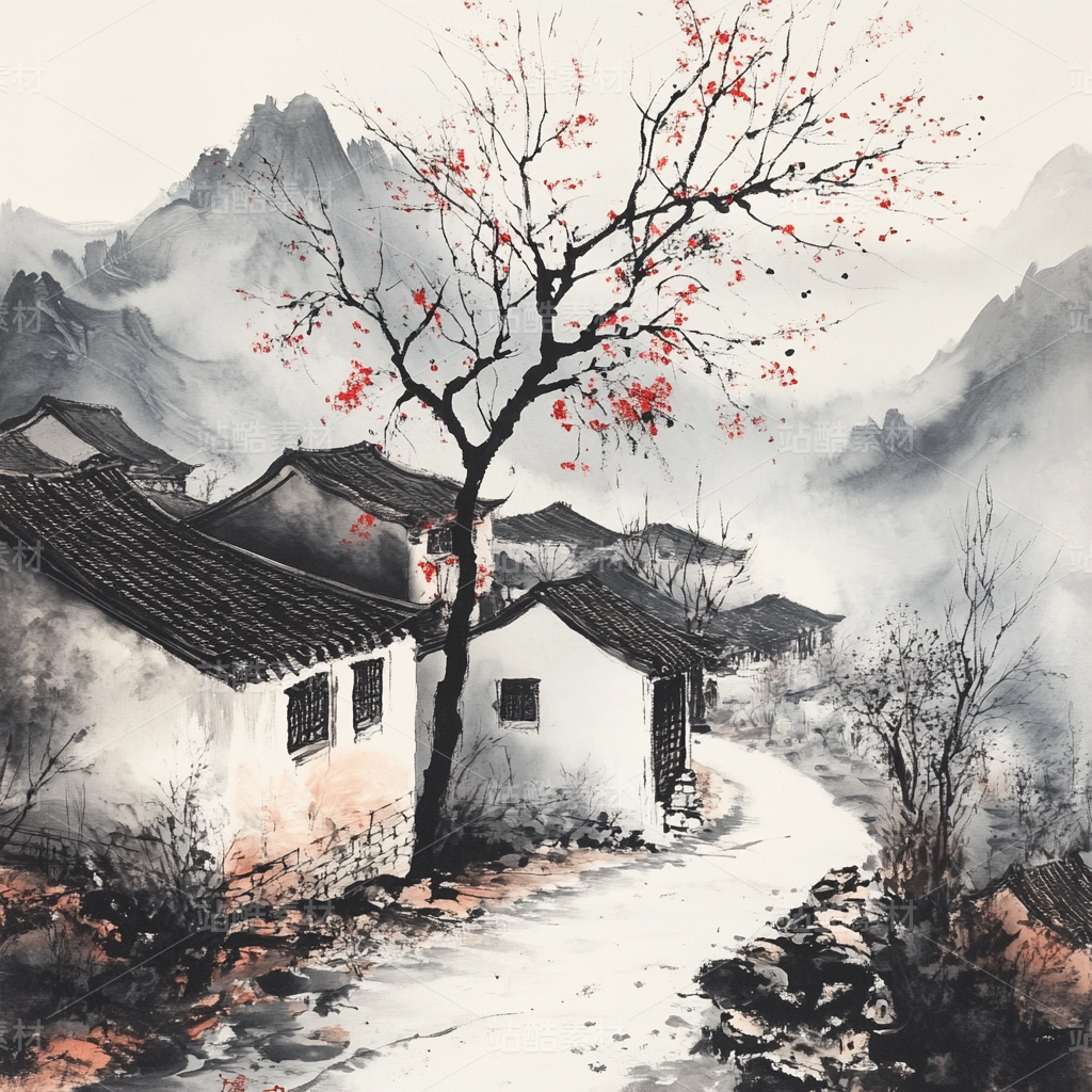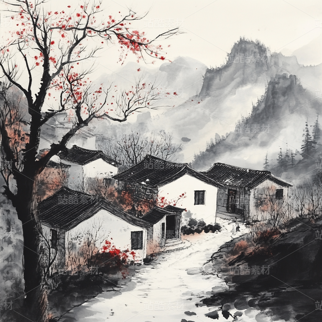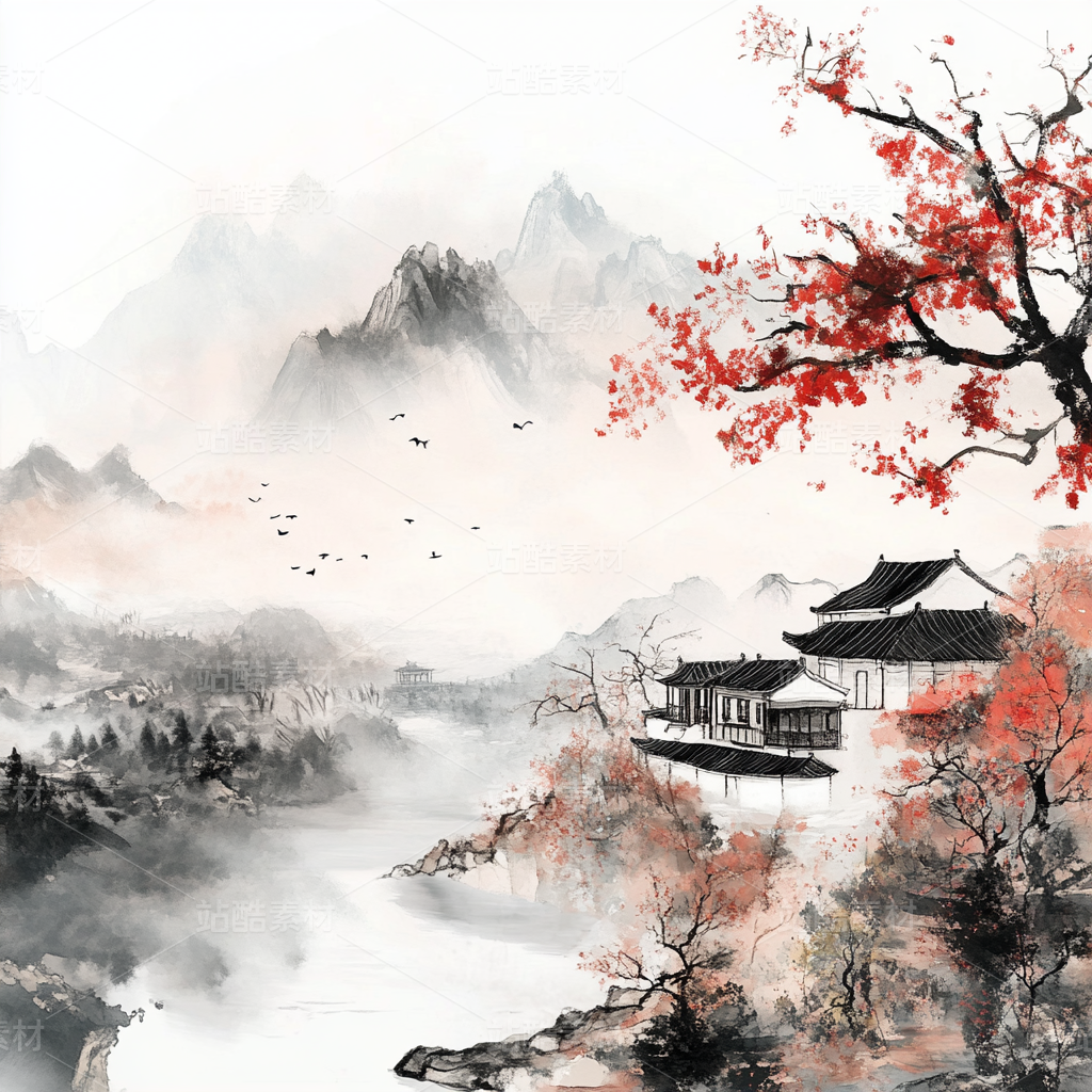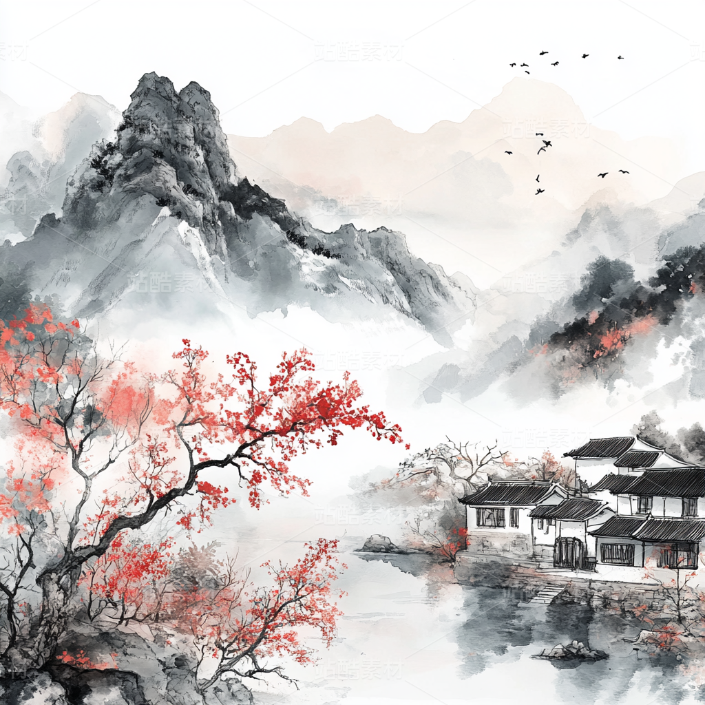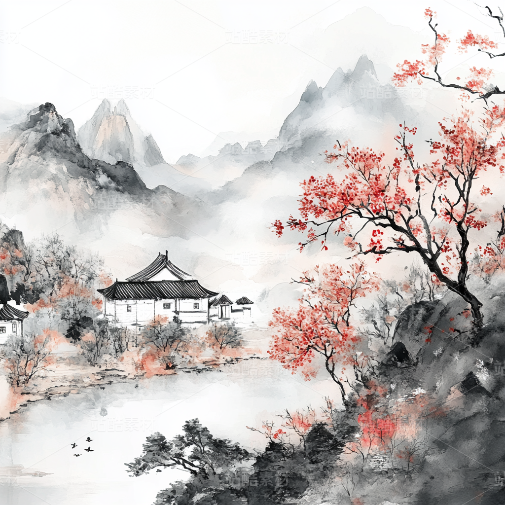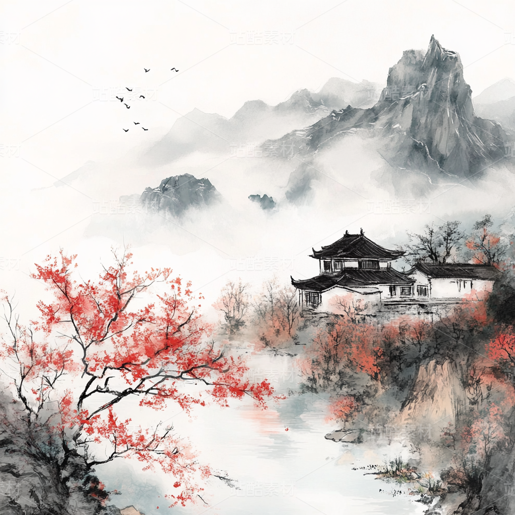 水墨中国风毛笔画国画图片素材工笔人物山水