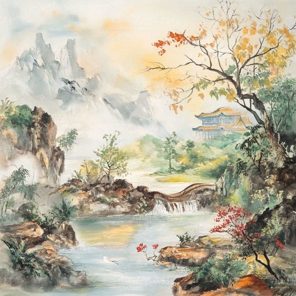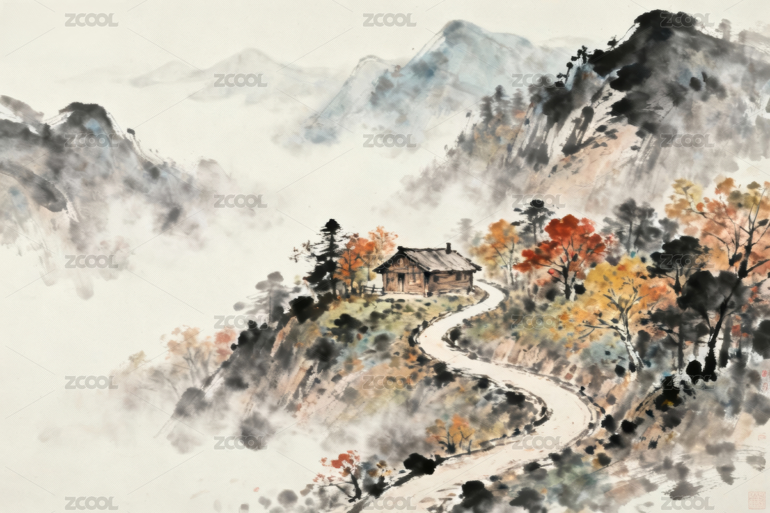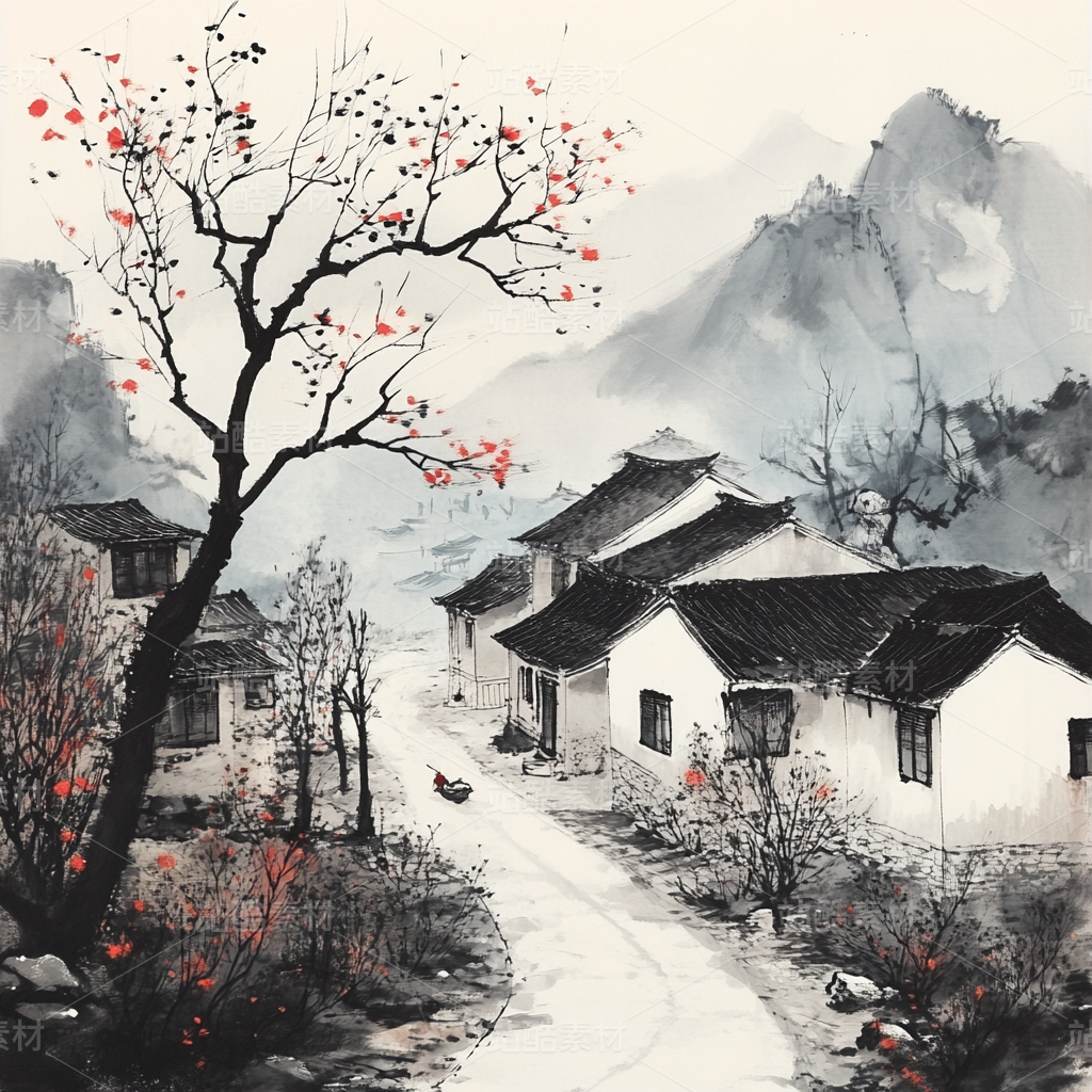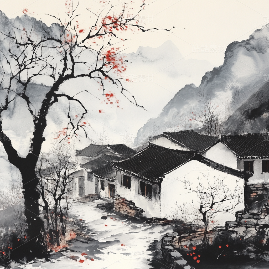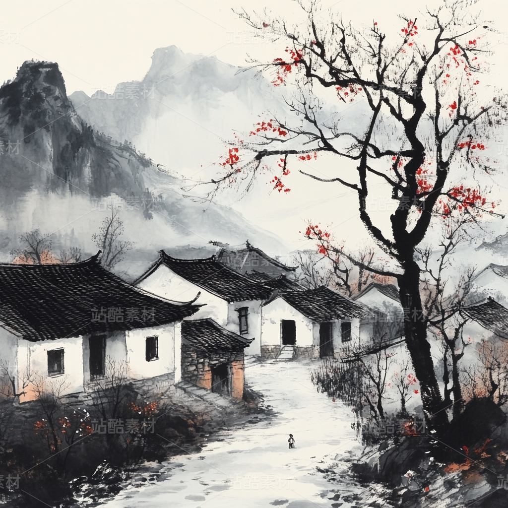 水墨中国风毛笔画国画图片素材工笔人物山水
