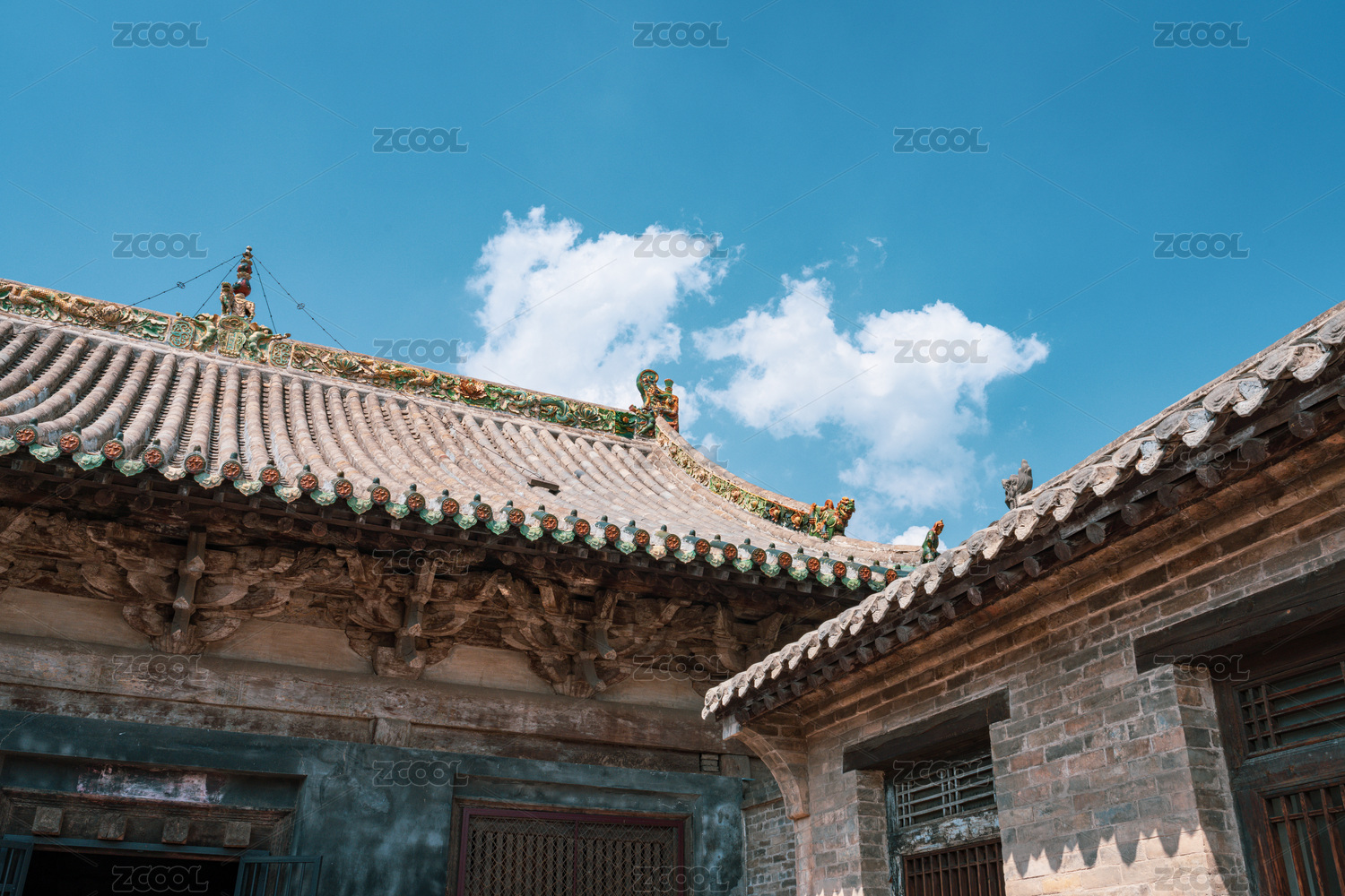 中国山西省平遥县古城牌楼斗拱园林建筑