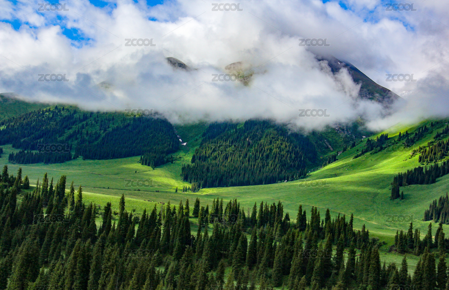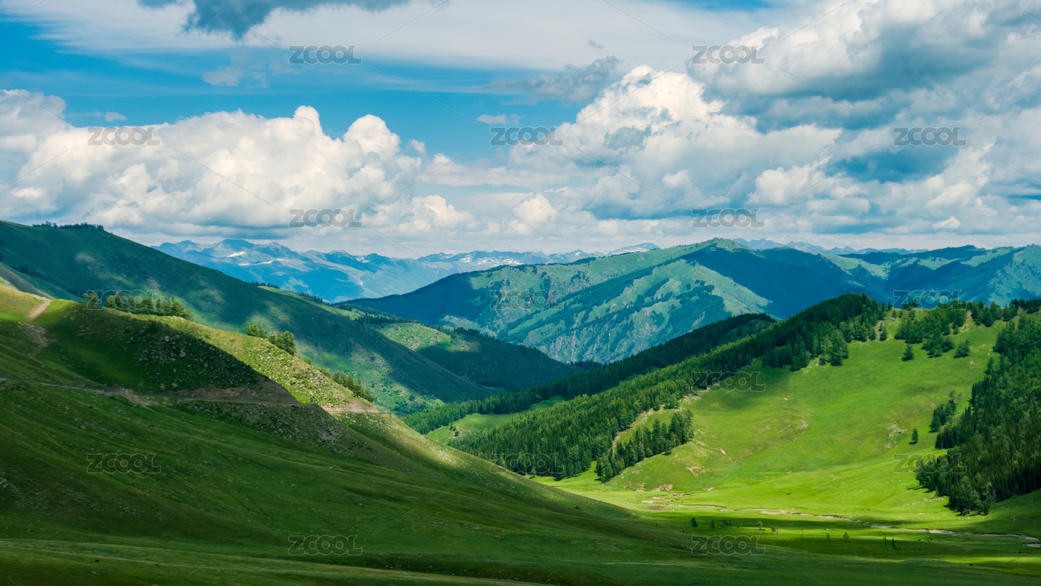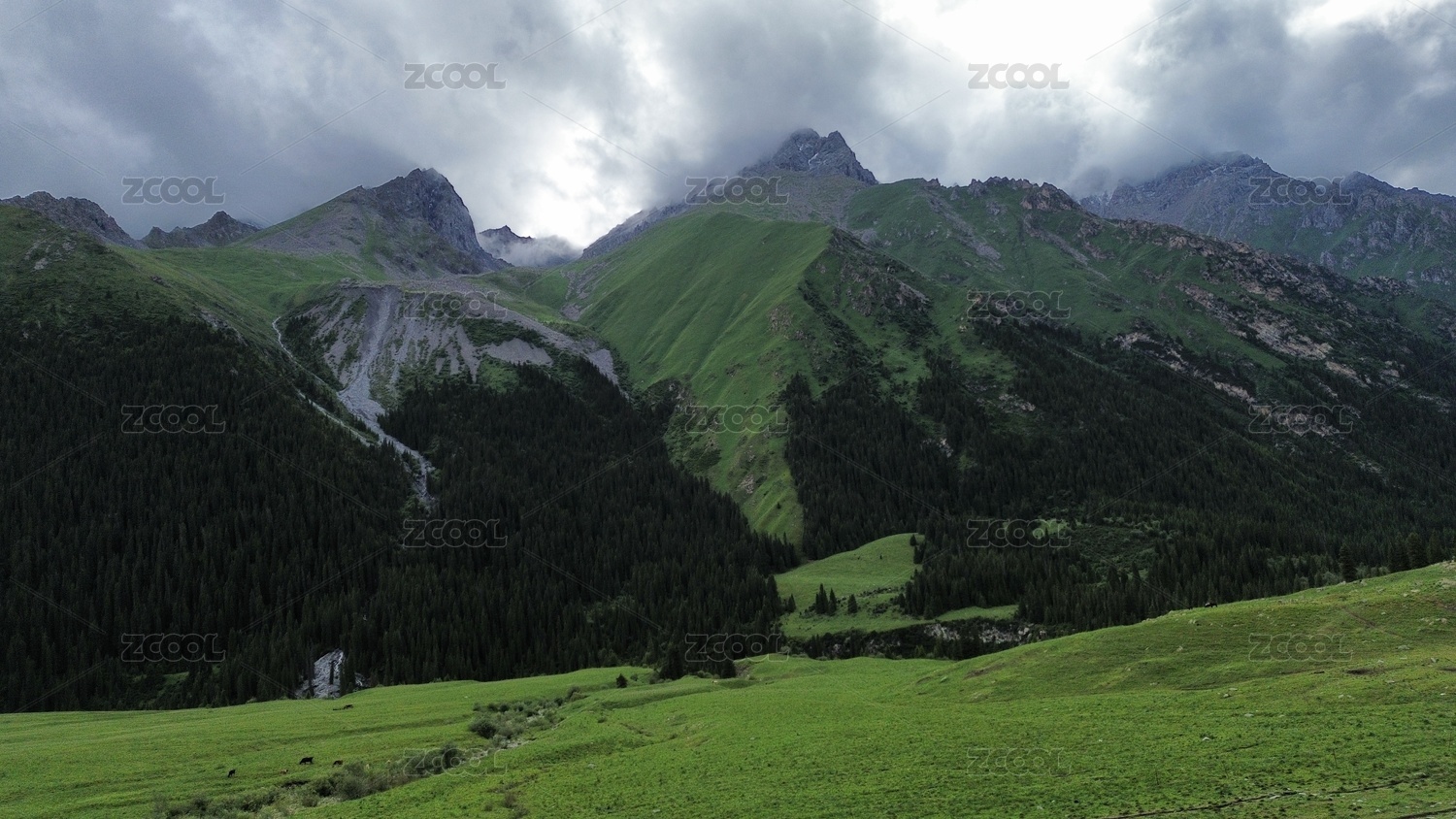 中国新疆维吾尔族自治区伊犁唐布拉草原大自然高山森林风光
