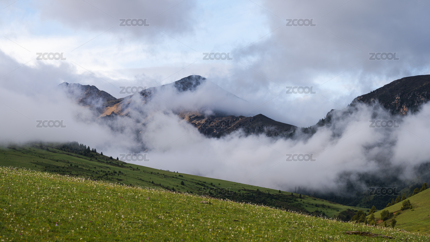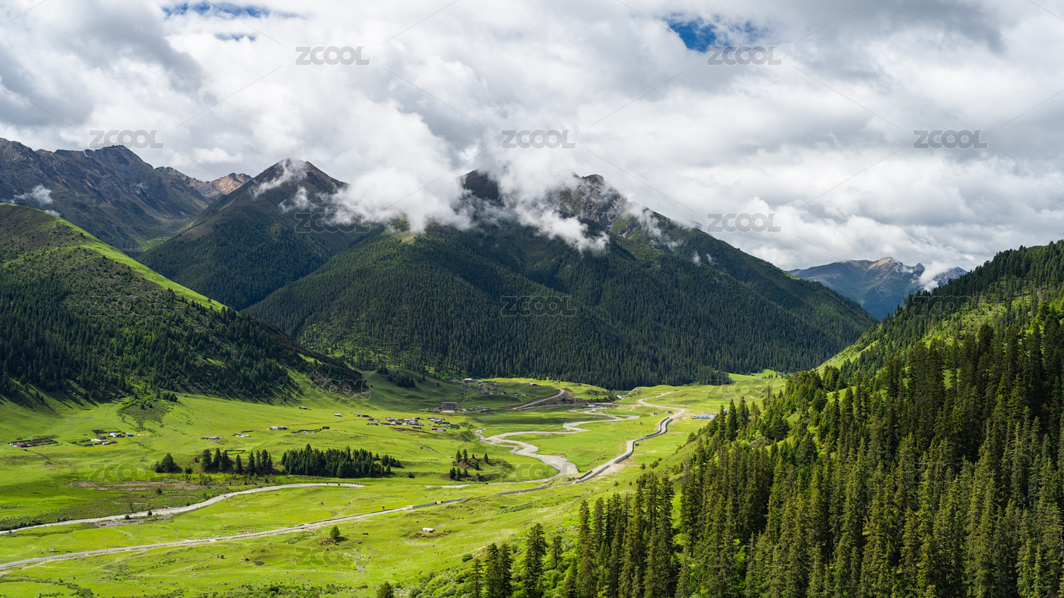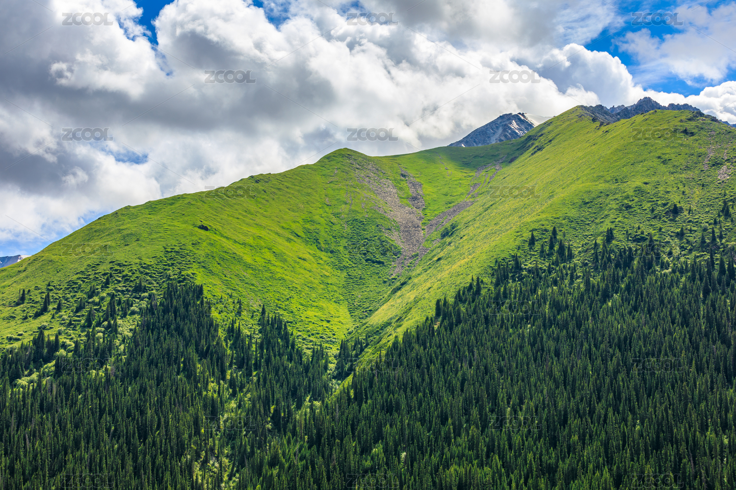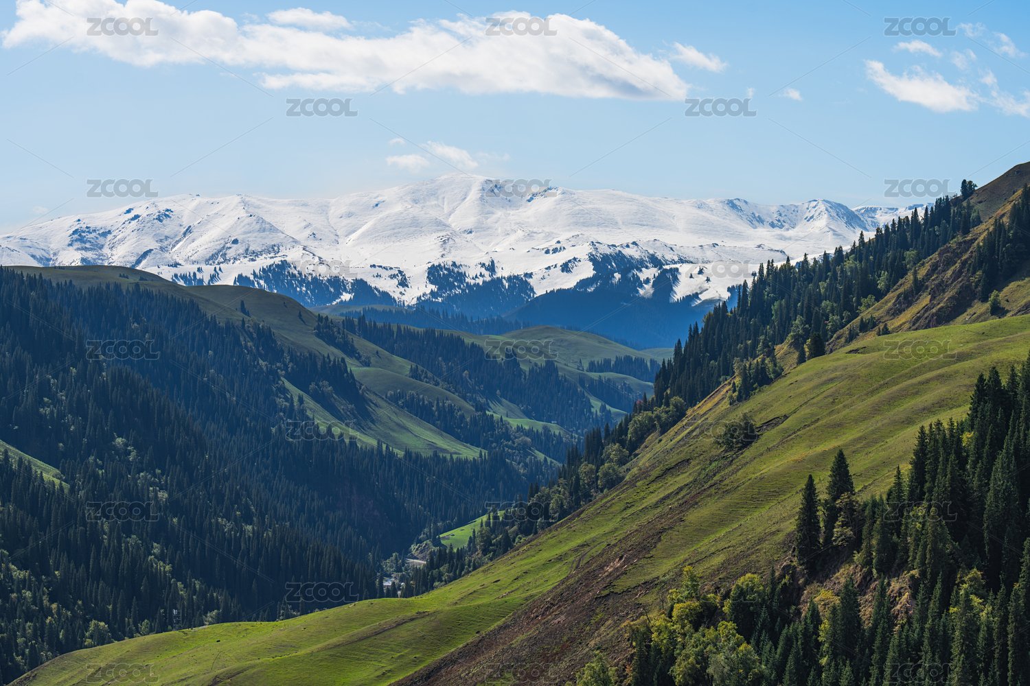 中国新疆维吾尔族自治区伊犁唐布拉草原大自然高山森林风光