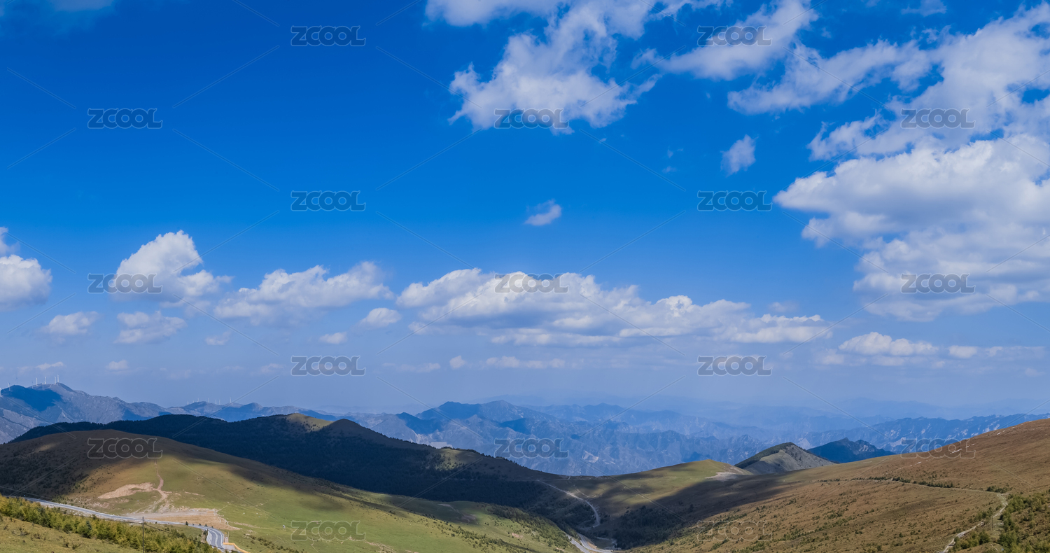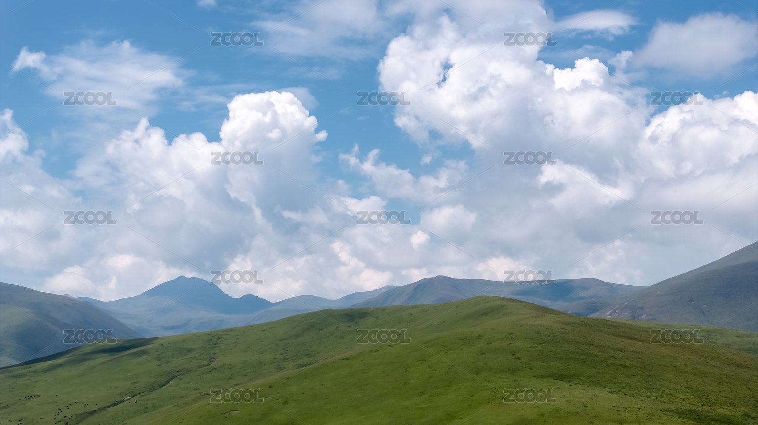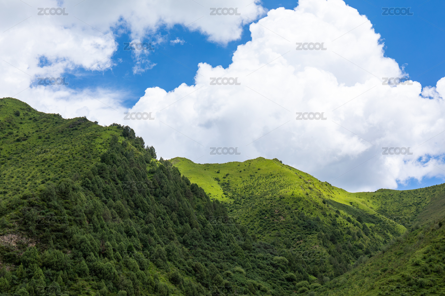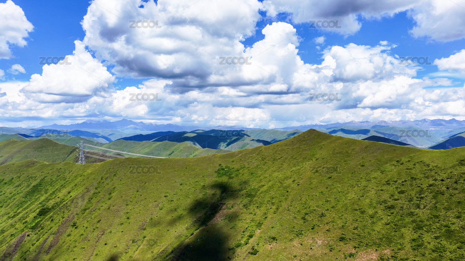 甘南秘境洛克之路连绵绿色山脉蓝天白云