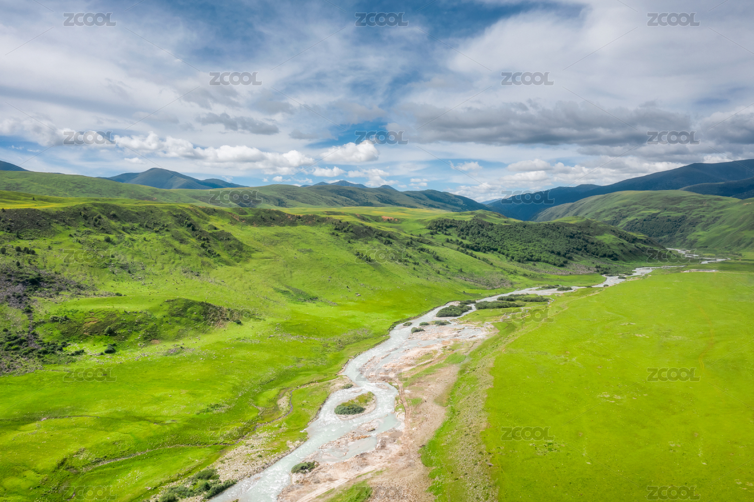 航拍中国理塘格聂镇夏季河谷草地自然风光