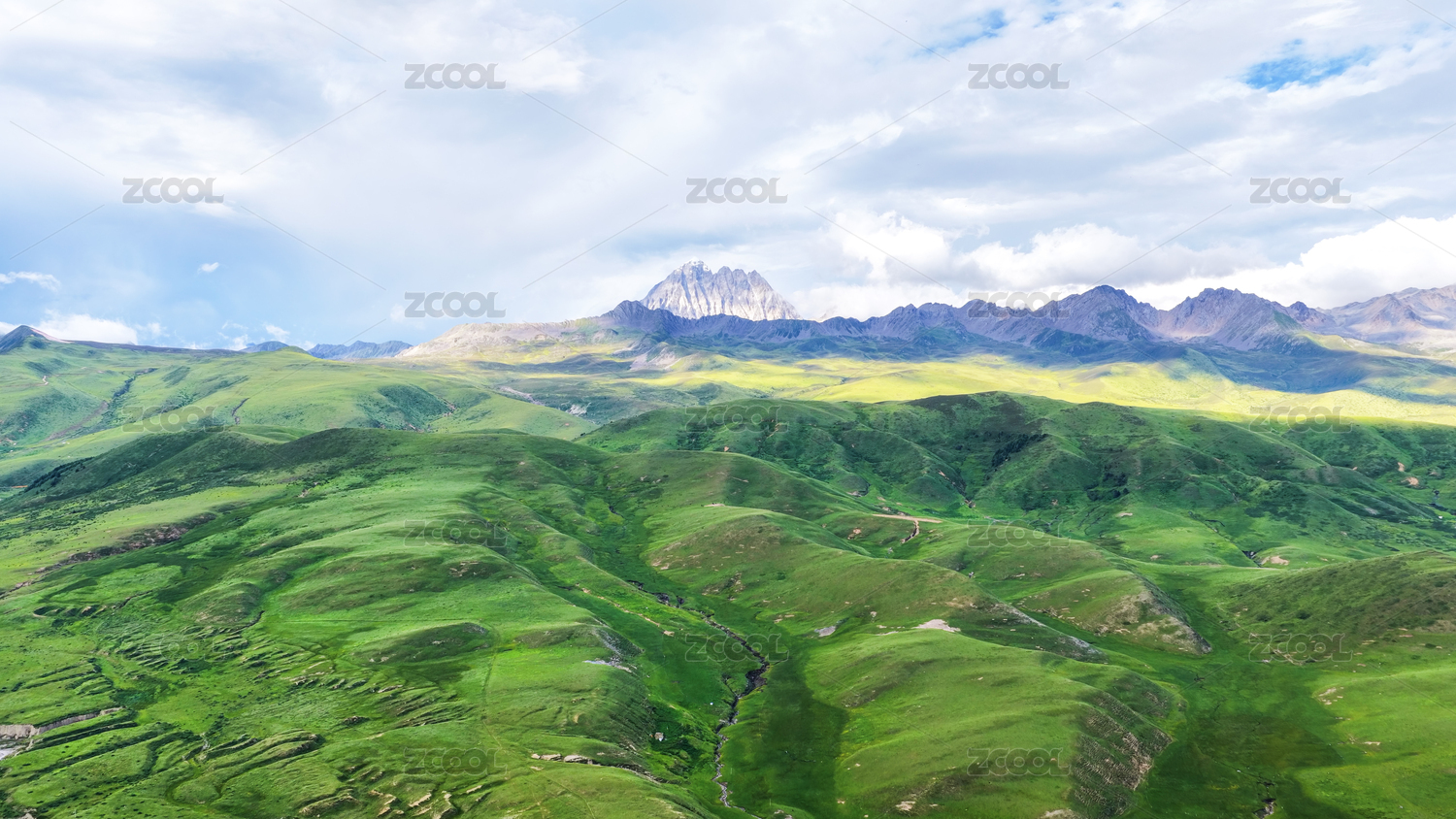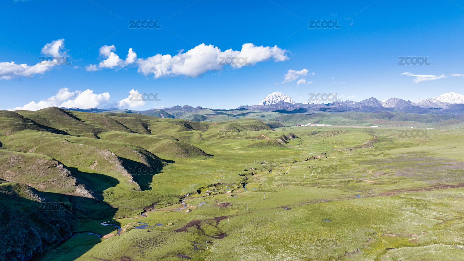 四川甘孜藏族自治州夏天草原山水雪山自然风