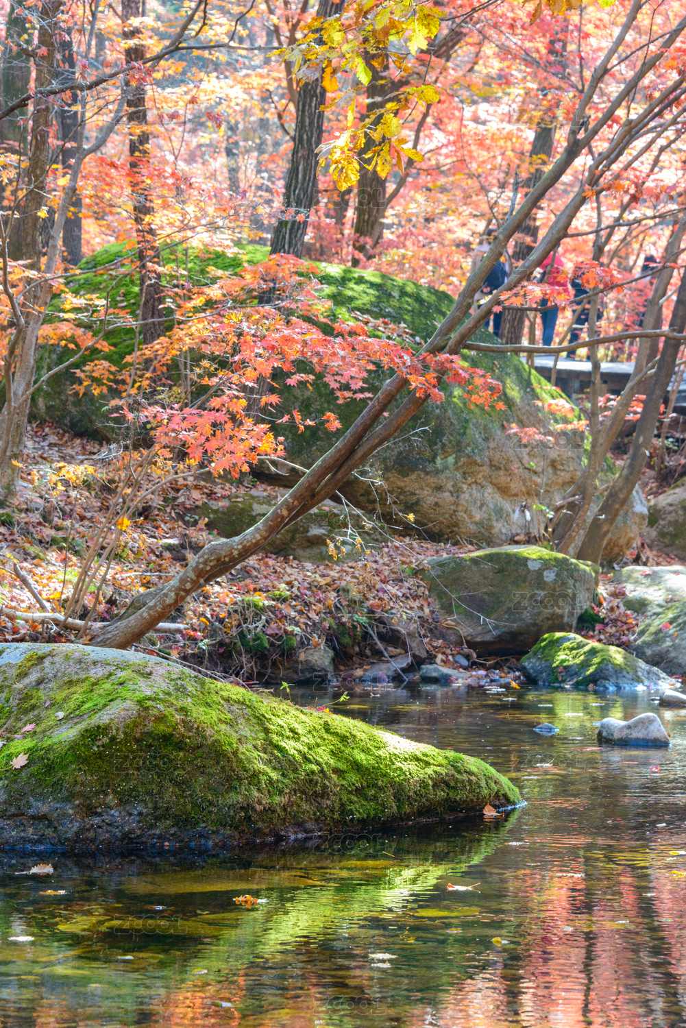 辽宁本溪大石湖风景名胜区秋天红枫景色