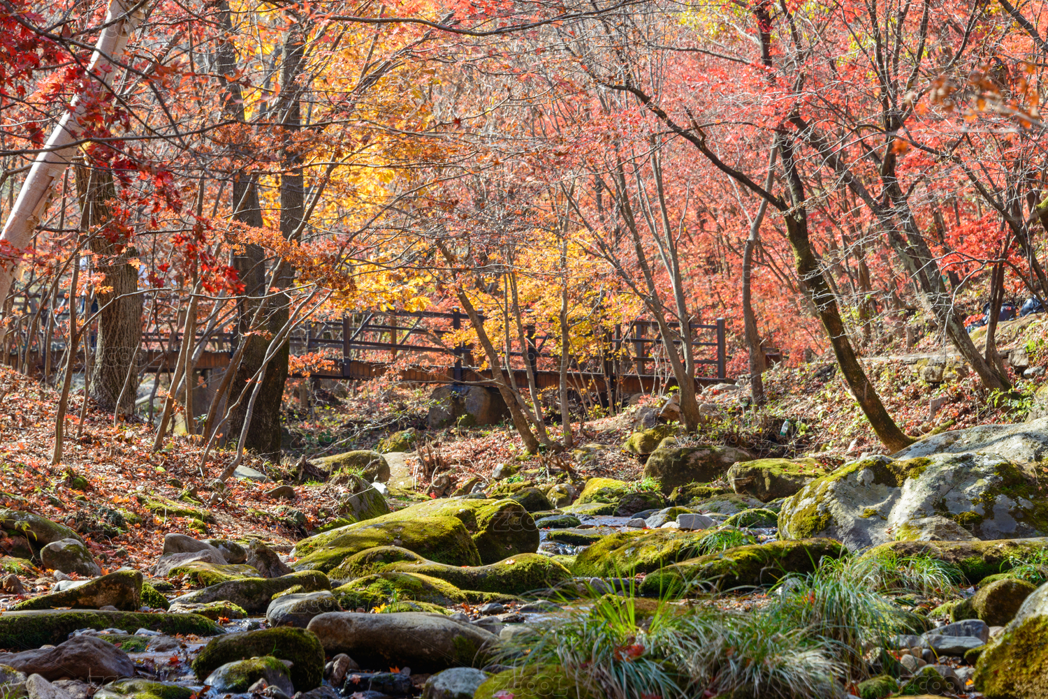 沈阳本溪老边沟,秋季枫树红叶溪流自然风光