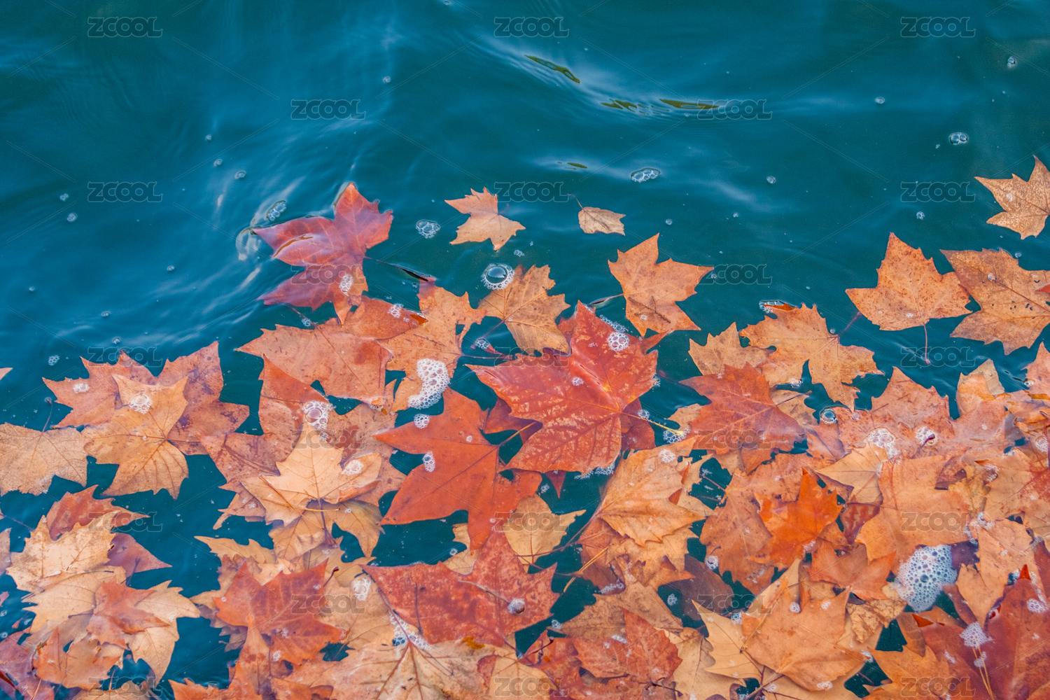 秋天水面上的落叶