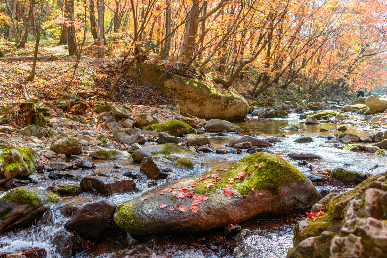 沈阳本溪老边沟,秋季枫树红叶溪流自然风光