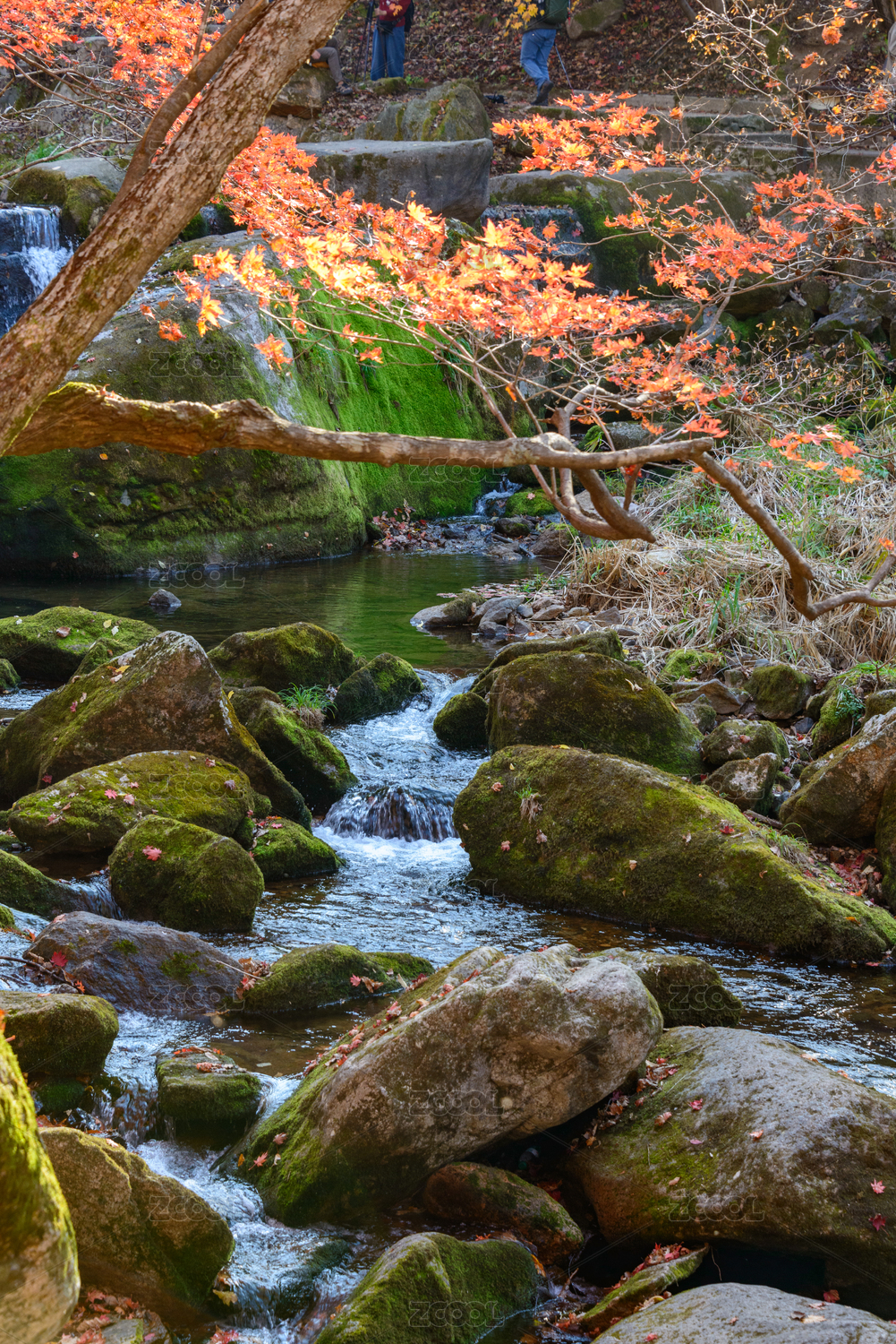 沈阳本溪老边沟,秋季枫树红叶溪流自然风光