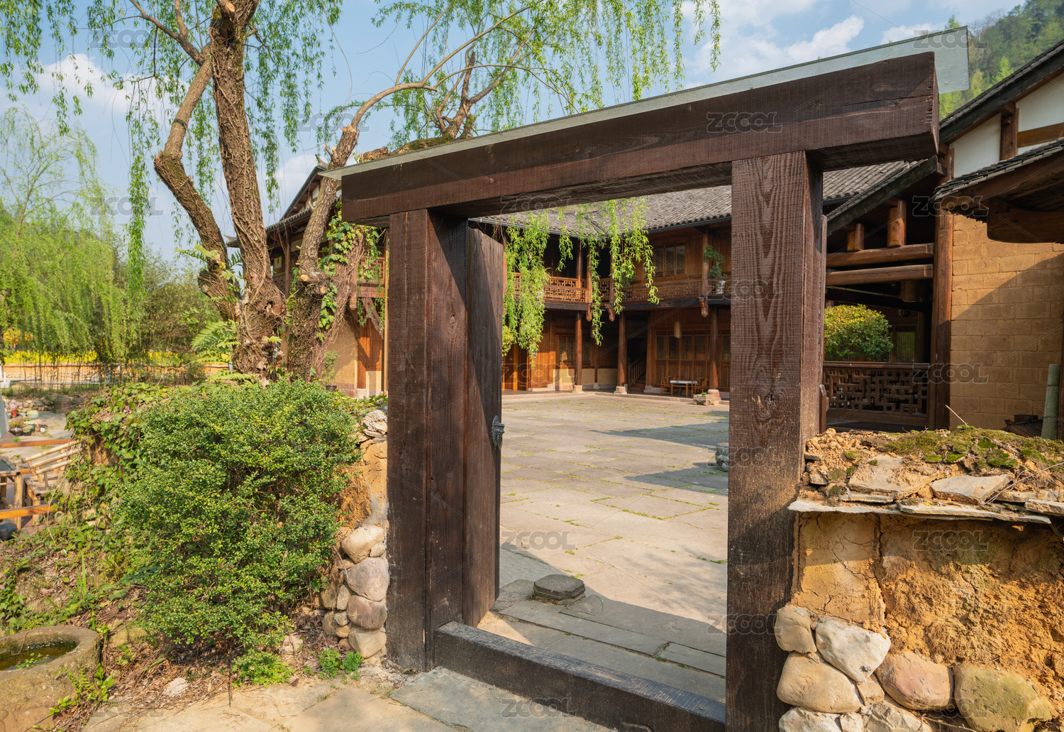 春天湖南张家界黄龙洞景区生态广场中式庭院