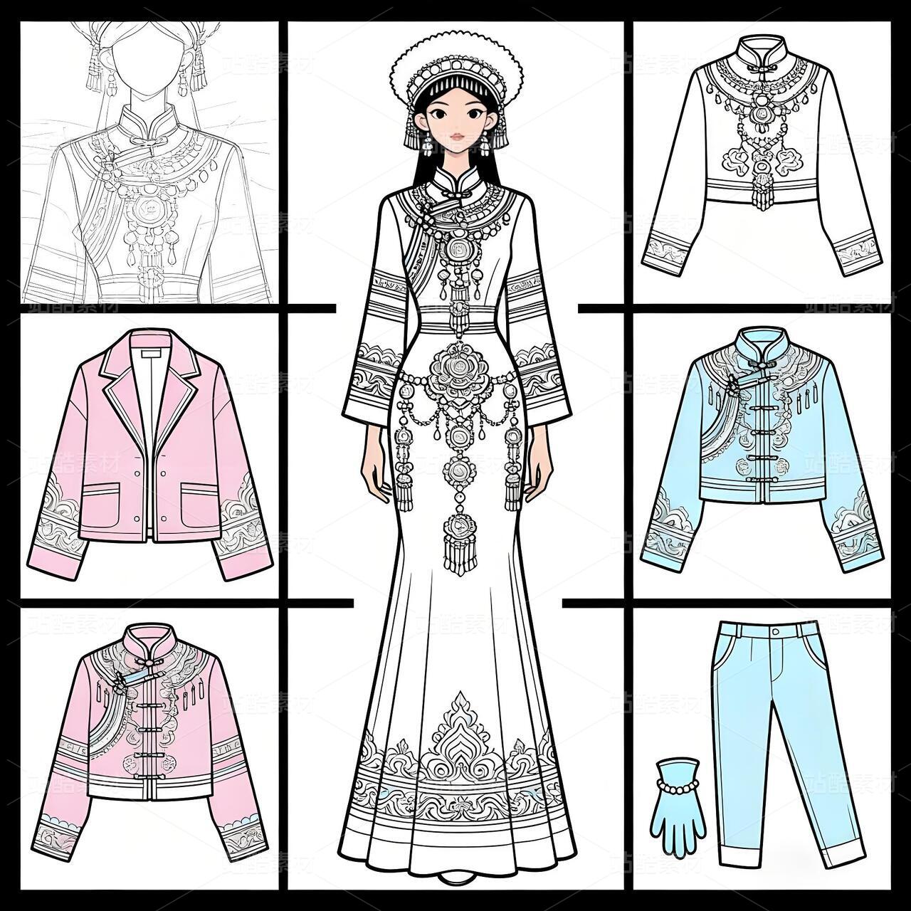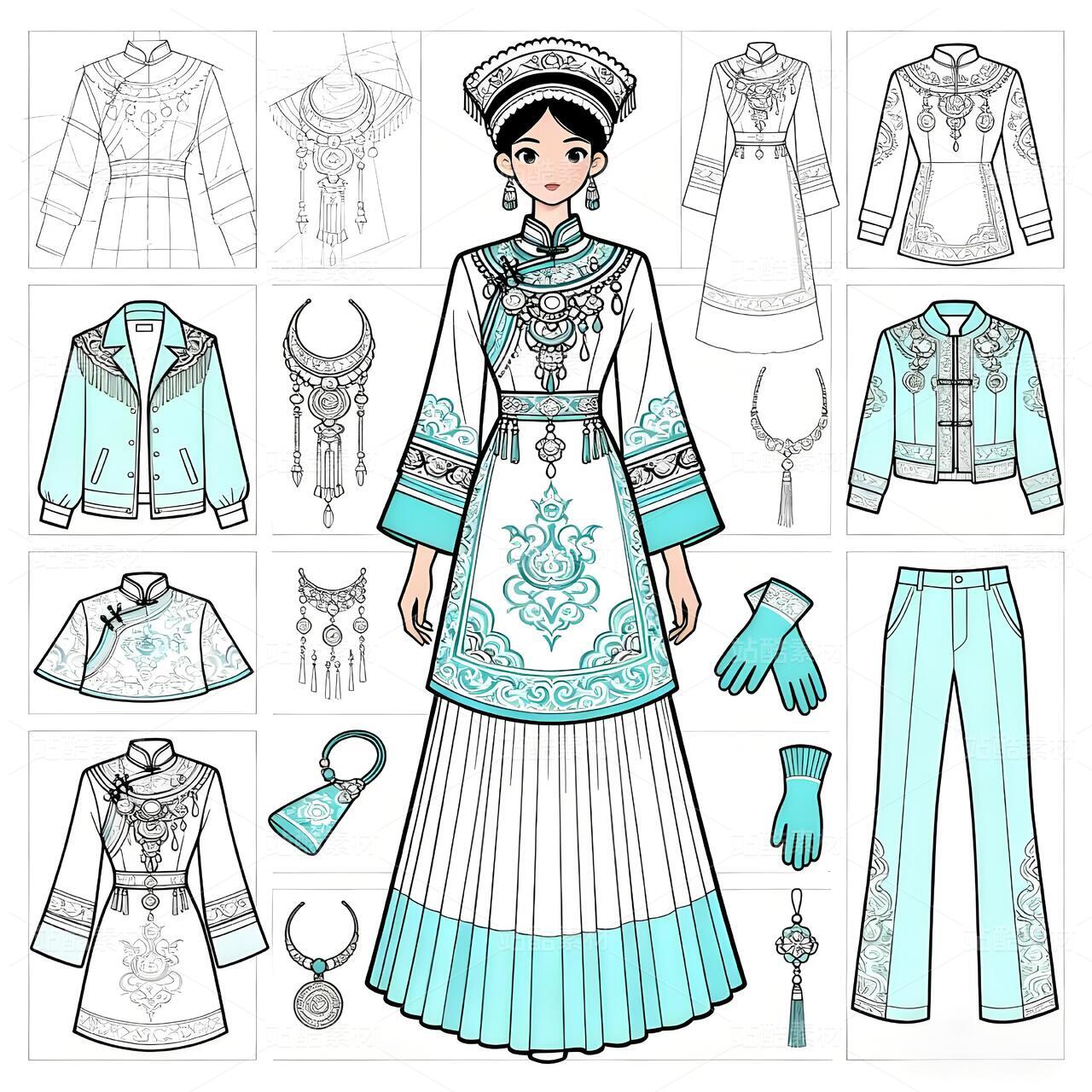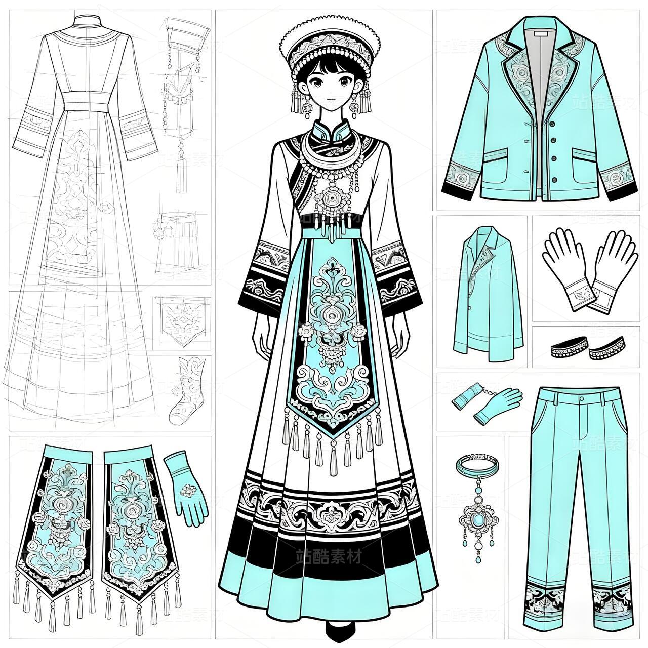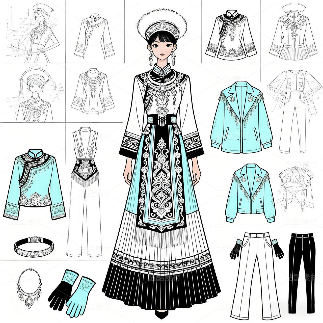 本系列「缥蓝云颂」高定礼服,从国家级非物质文化遗产——壮族织锦技艺中汲取灵感。设计师摒弃传统民族服饰的直白表达,将浅蓝色壮锦的经典纹样进行解构与再造,巧妙地融入现代礼服廓形之中。利落的西装外套、精致的抹胸上衣与飘逸的阔腿裤组合,在刚与柔、传统与未来之间找到平衡点。服饰上的每一片壮锦都由手工织就,不仅是对古老技艺的致敬,更是将其提升至高级时装的艺术层面。这是一次让非遗“见人见物见生活”的时尚实践,旨在让古老的民族文化在当代焕发出新的生命力。