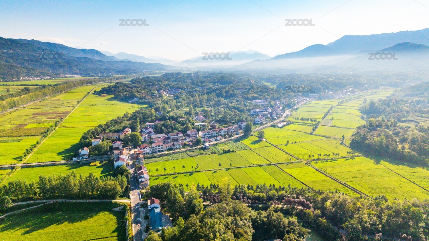 航拍秋日傍晚浙江上虞丁宅乡山村美景