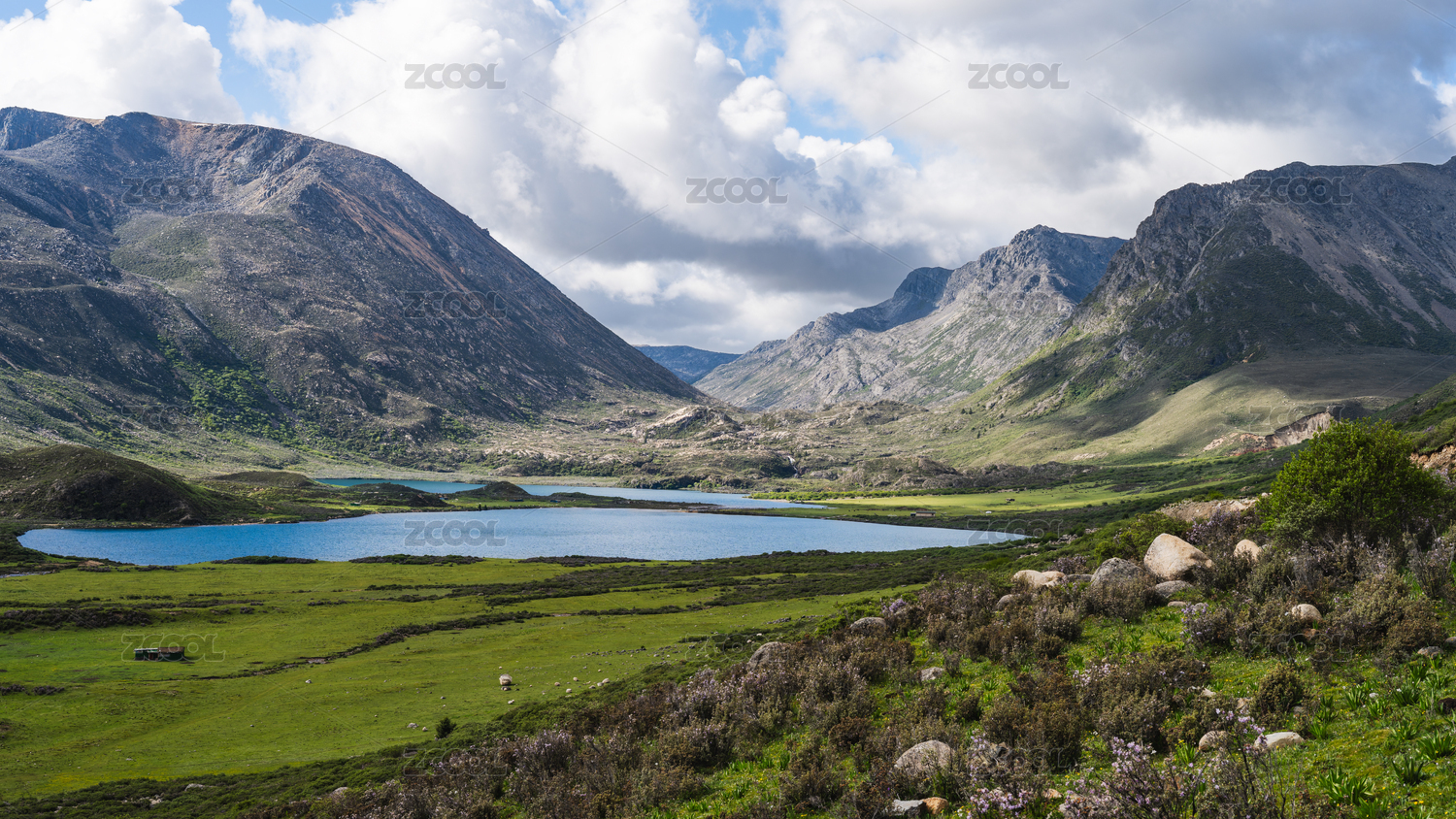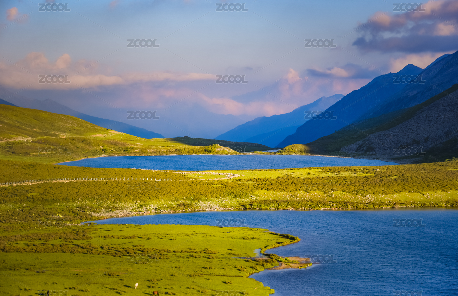 中国四川甘孜藏族自治州高山湖泊山水自然风