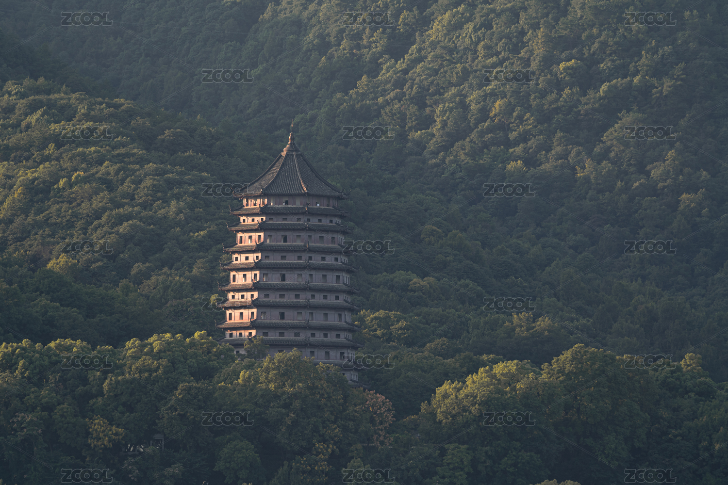 山顶宝塔远眺