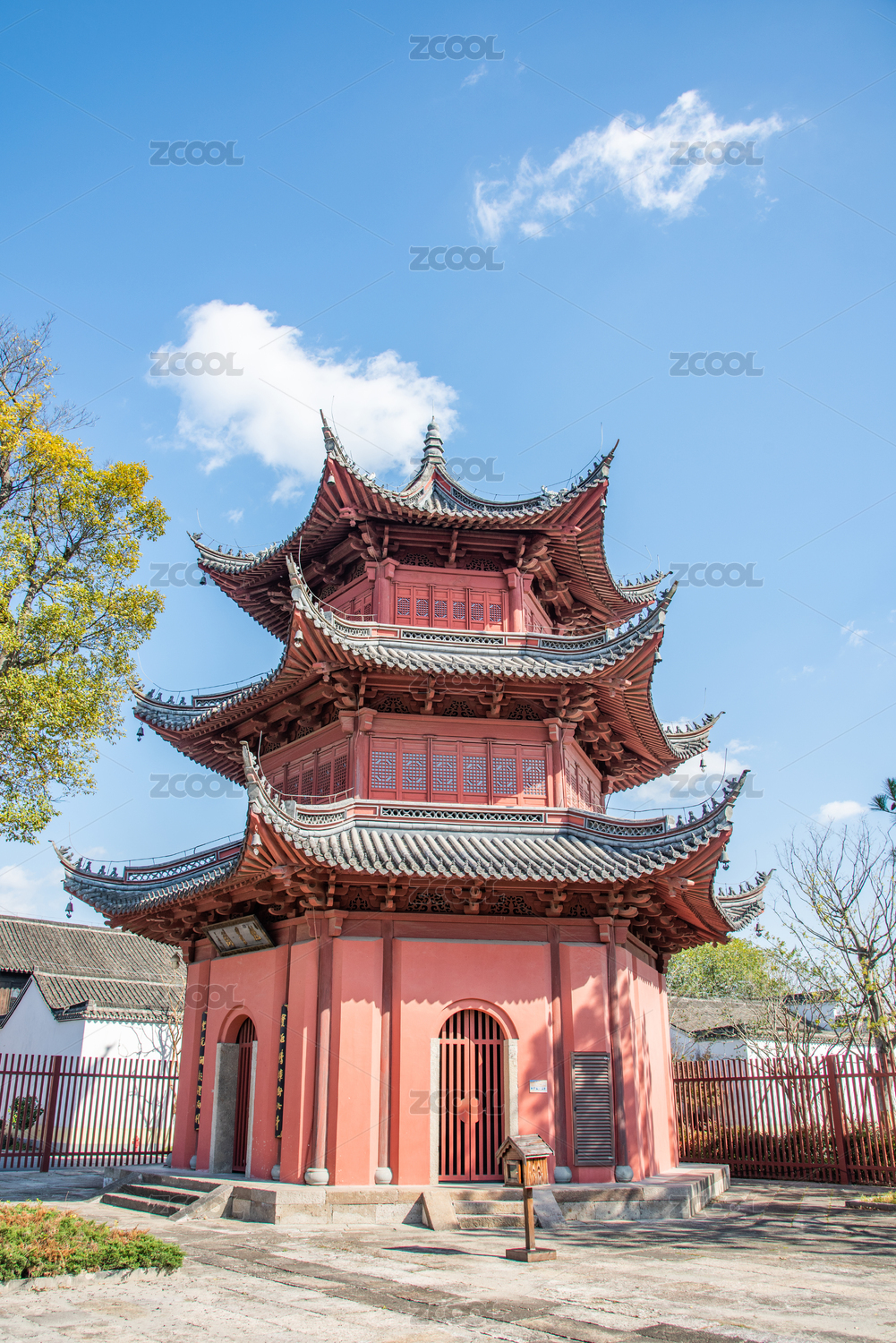 宁波七塔禅寺钟楼古建筑在初夏的风景