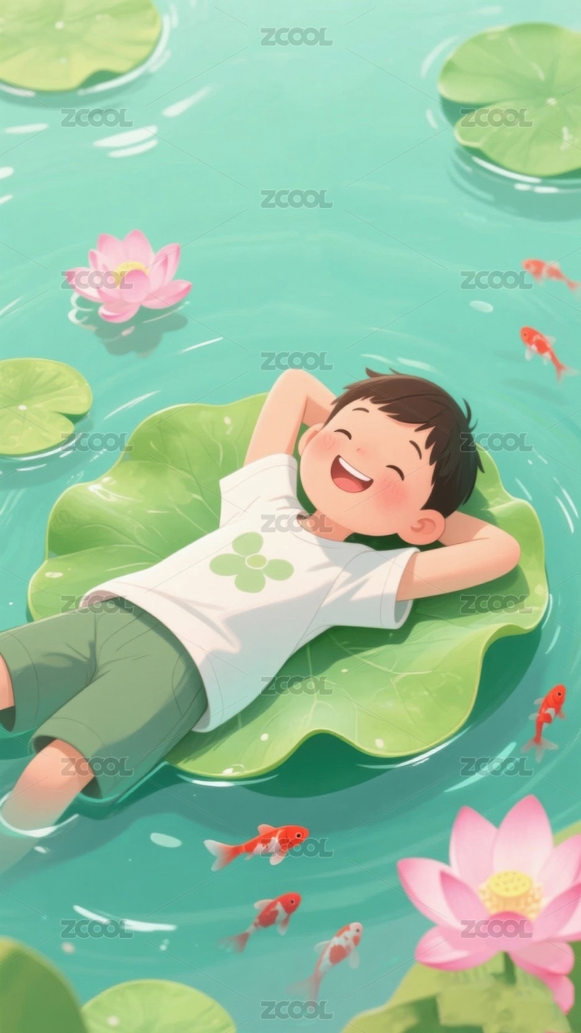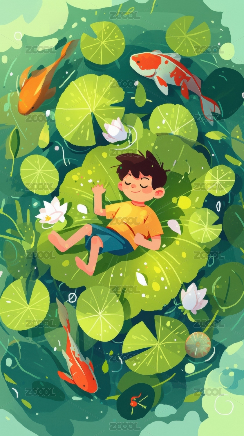 户外,自然,和谐,绿色,休闲,环境,宁静,童趣,插画,荷叶