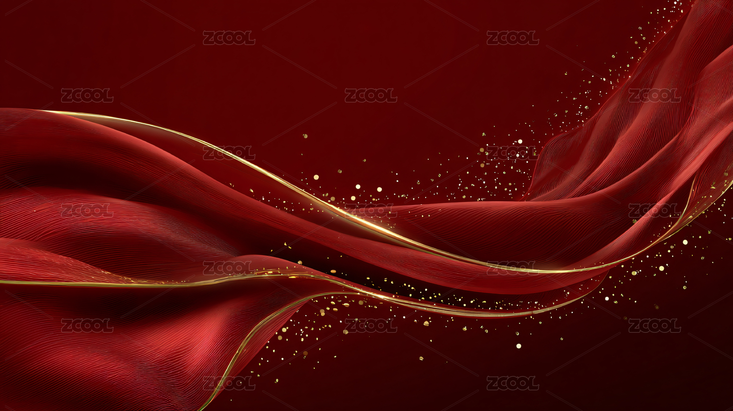 红色背景金色波浪光点装饰图案