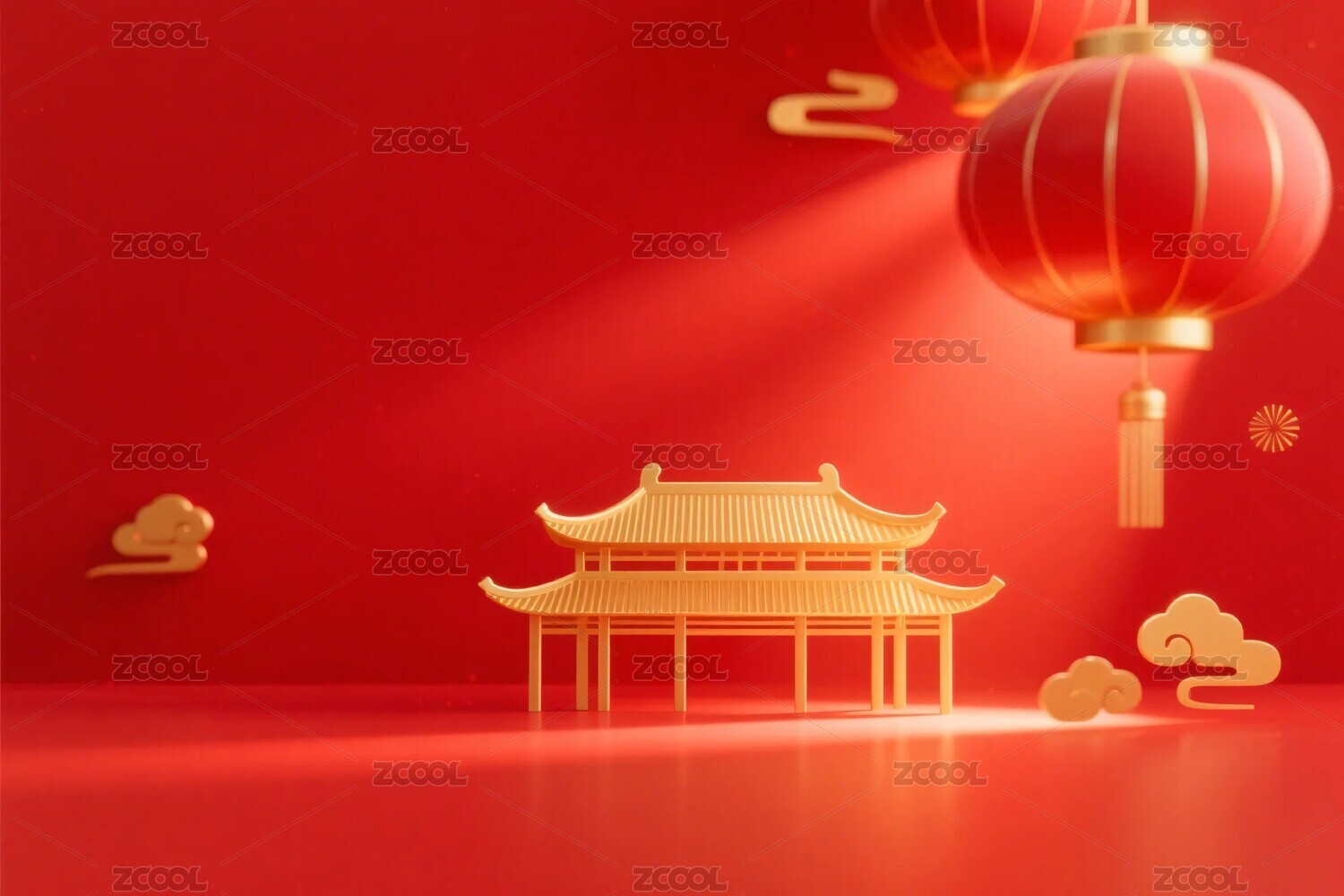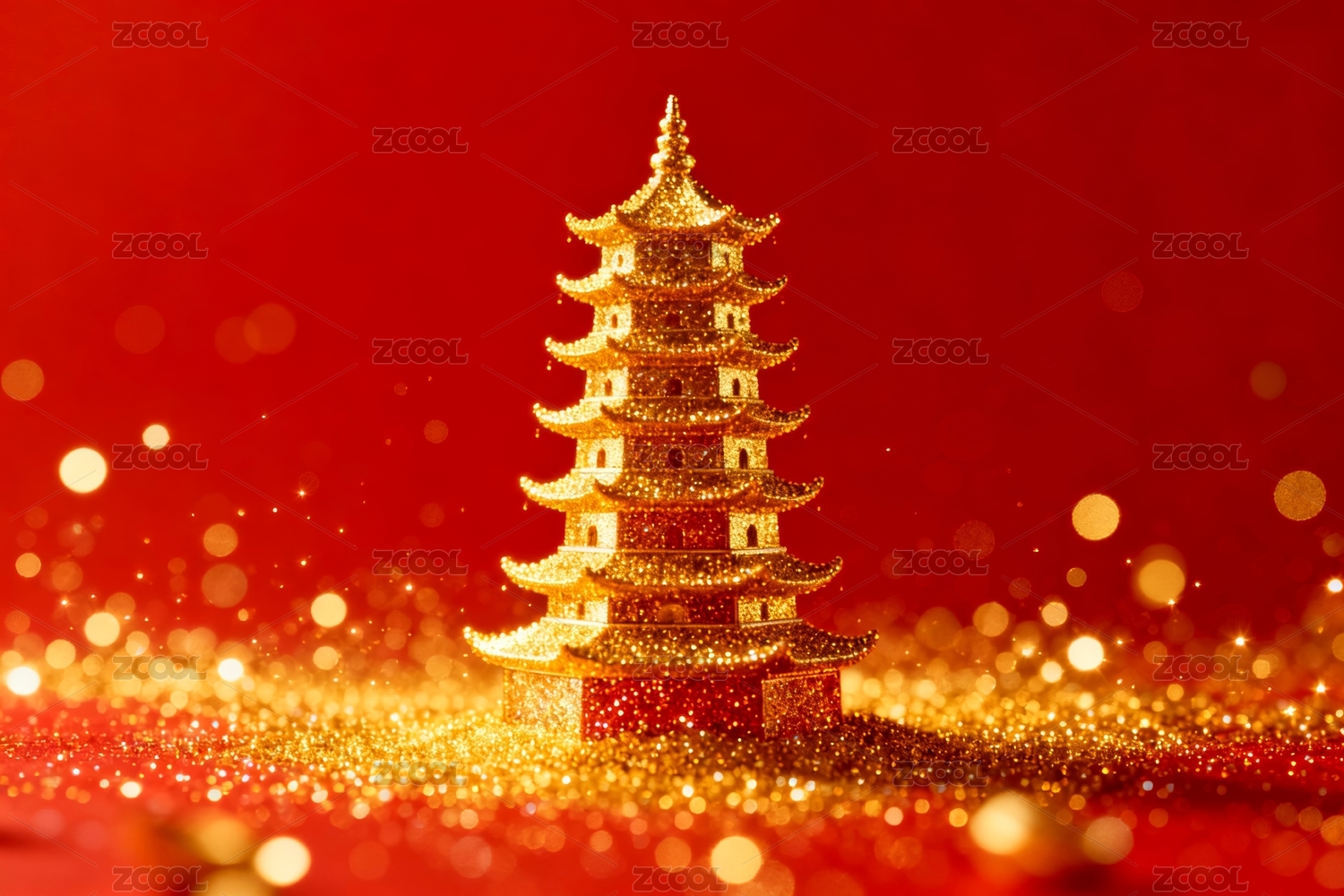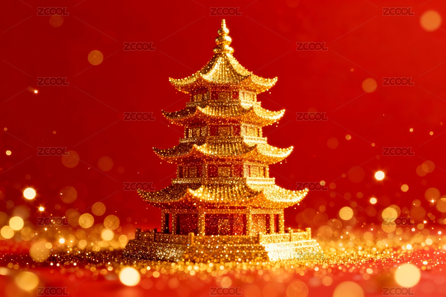 主视觉,商业,壁纸,金色,宝塔,喜庆,装饰,场景,红底,闪光