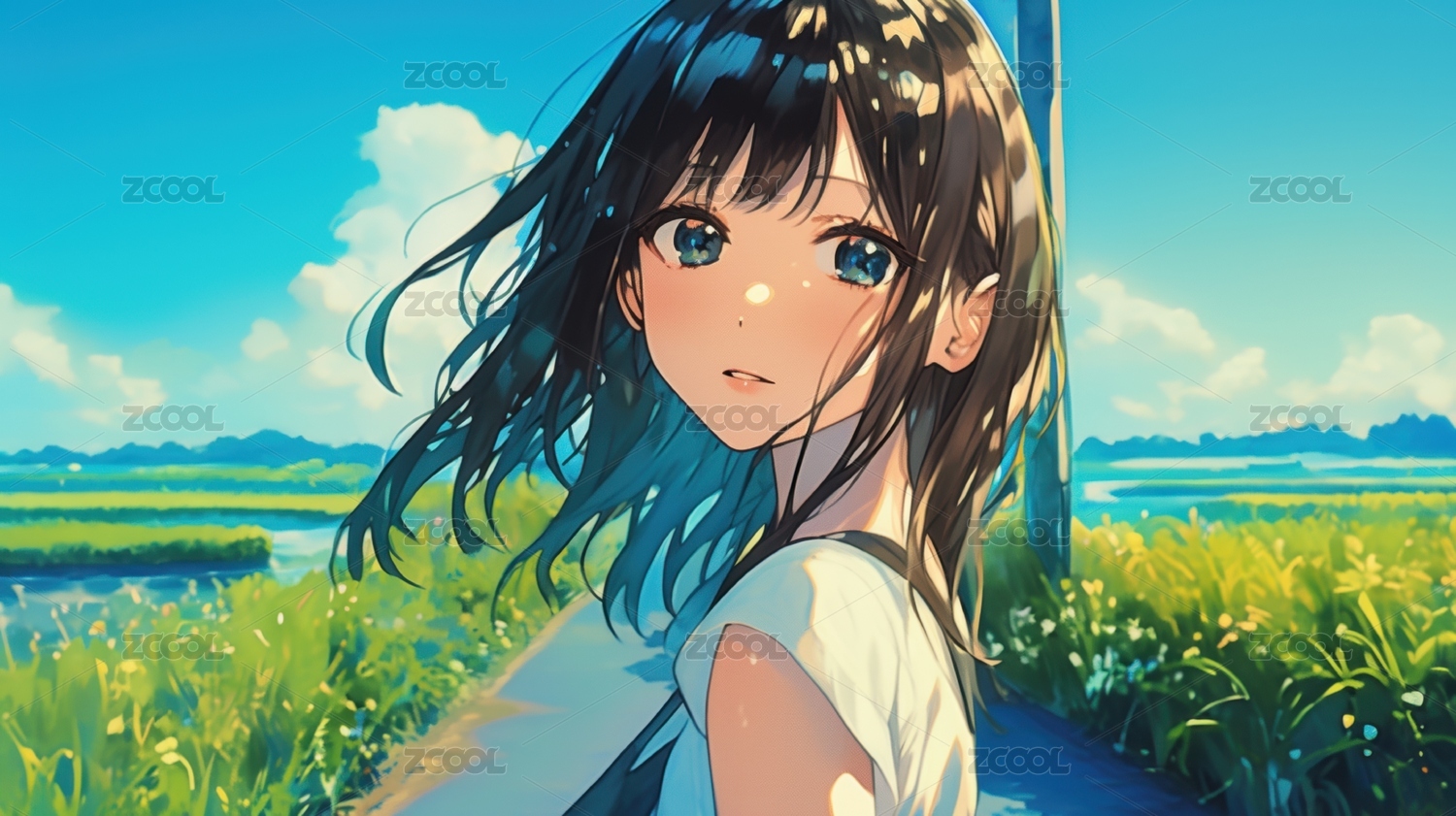 动漫女孩宫崎骏风格新海诚风格壁纸背景