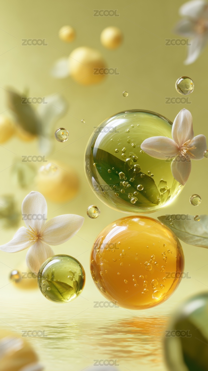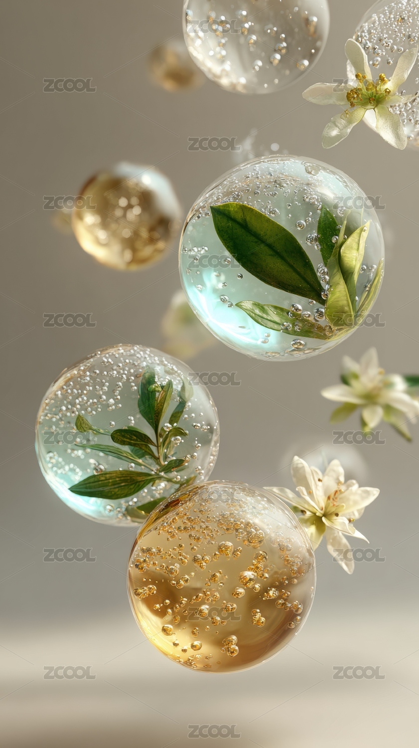 气泡,悬浮,背景,透明,光影,现代,艺术,创意,梦幻,绿色