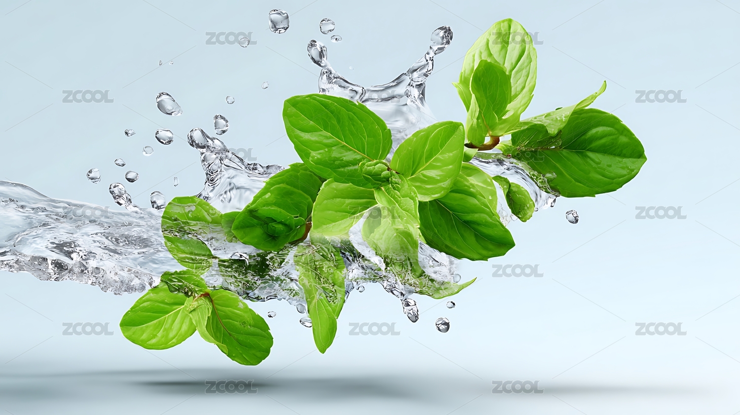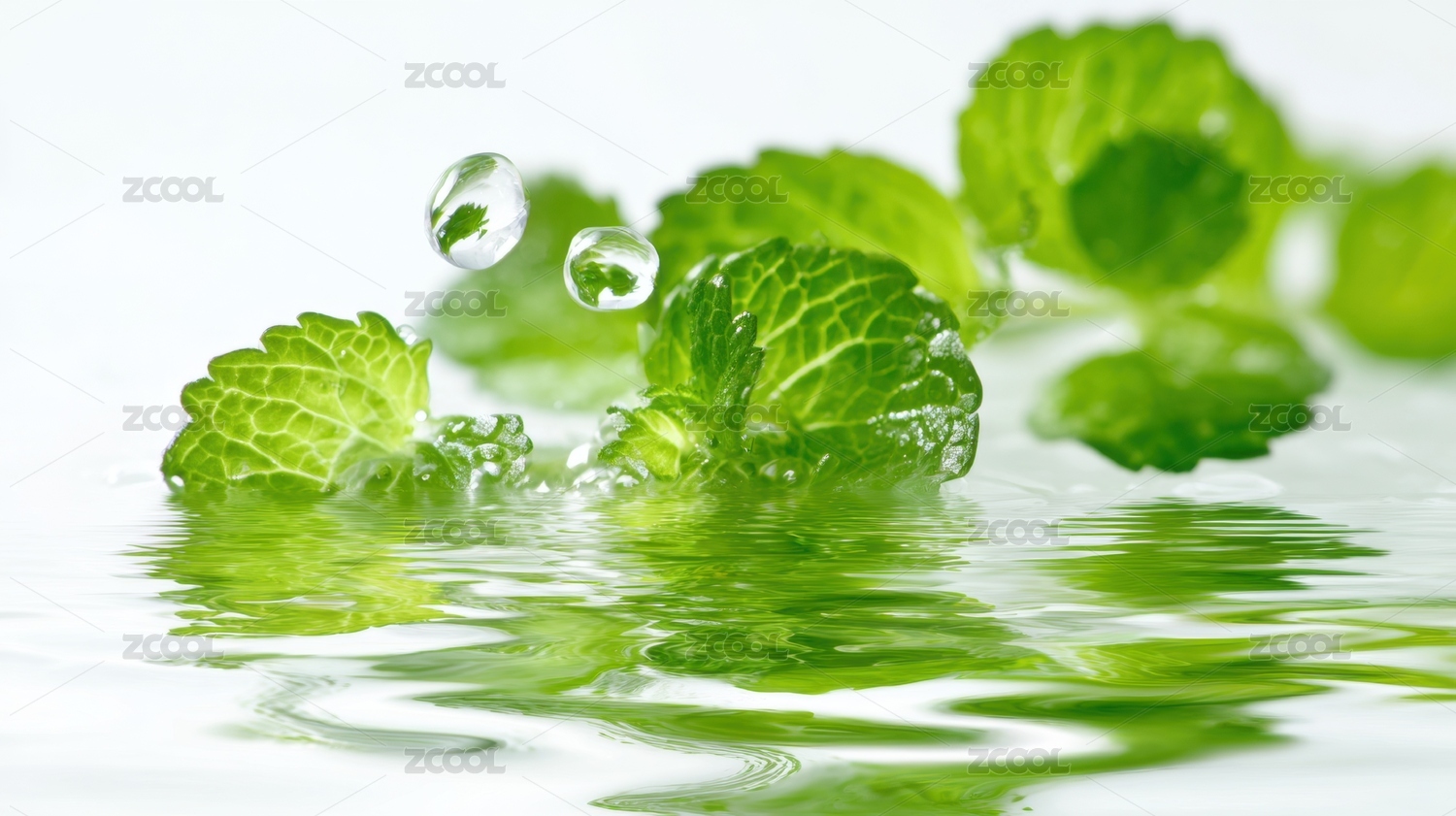 带水珠的鼠尾草花和水面倒影美容护肤元素
