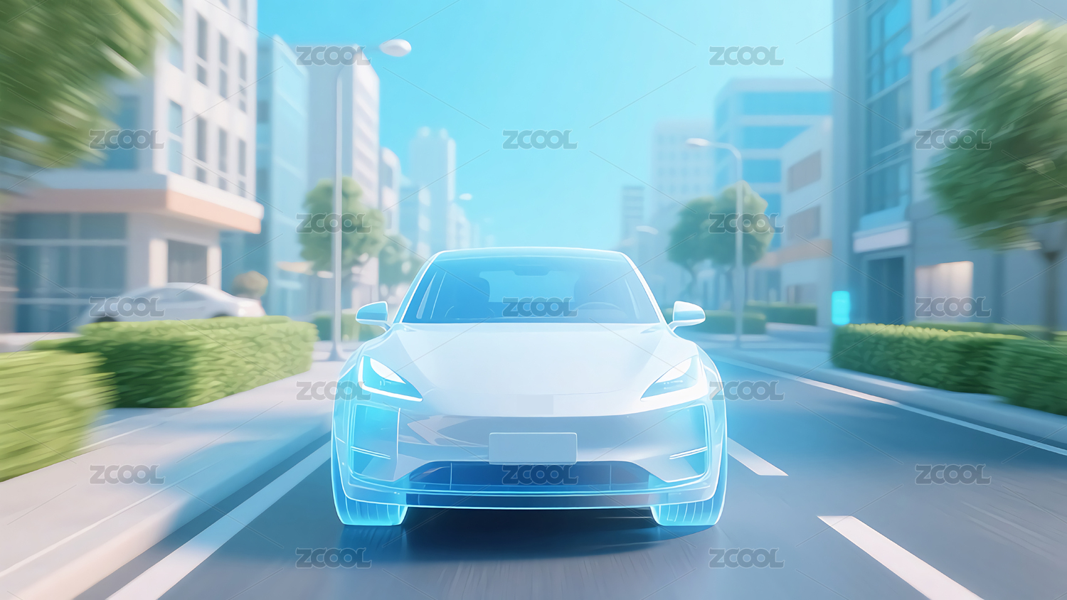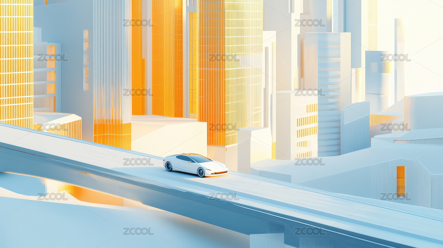 插画,蓝天,现代,风景,设计,科技,未来,汽车,城市,道路