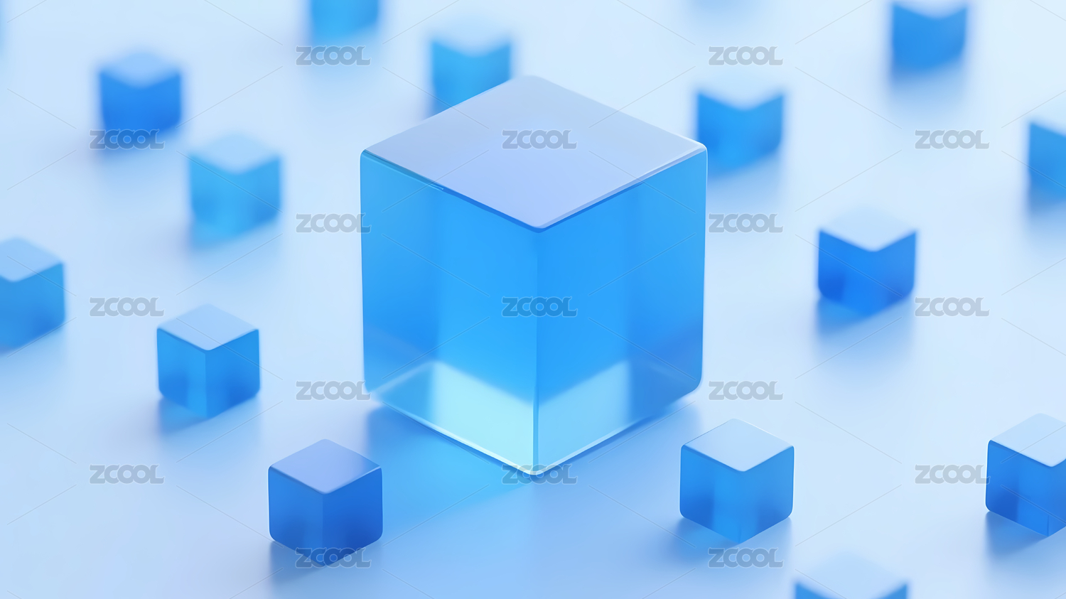 蓝色立方体与浅蓝渐变