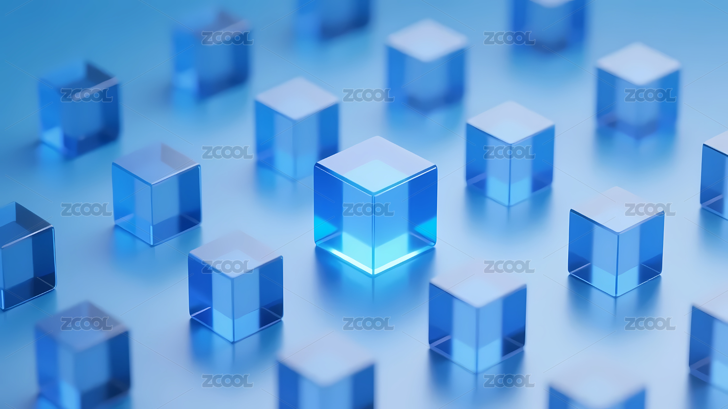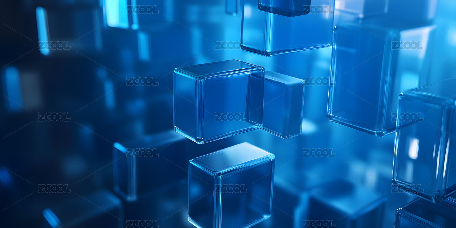 蓝色透明立方体的科技之美