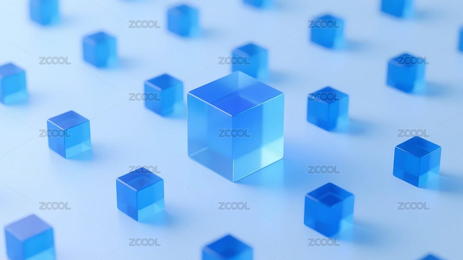 蓝色立方体浅蓝背景