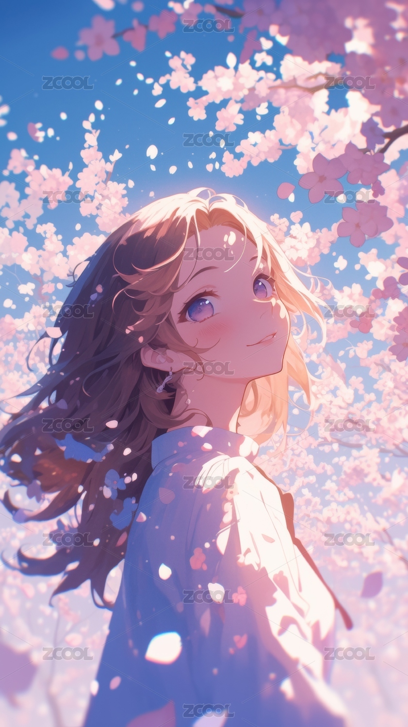 樱花树下少女仰望天空