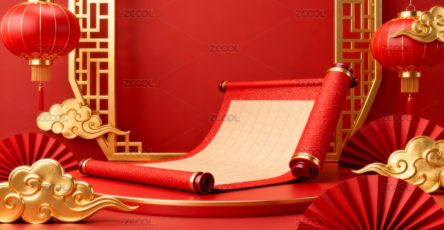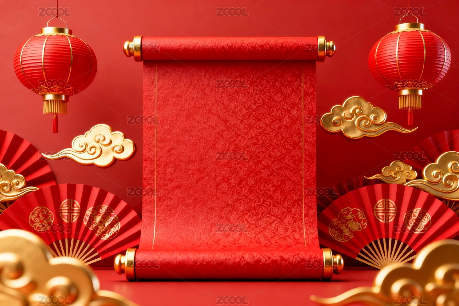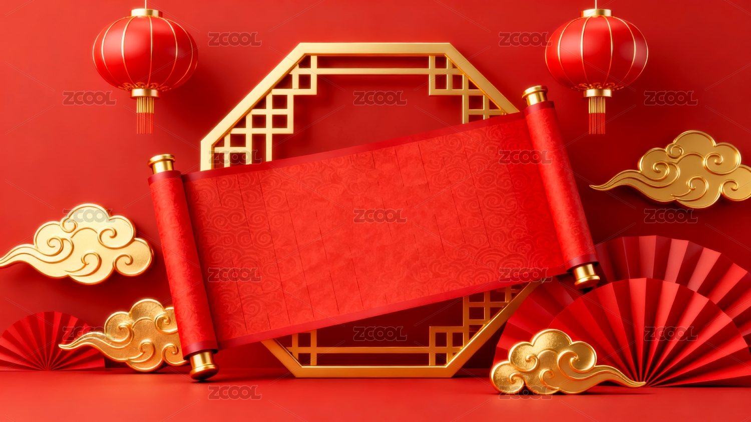 主视觉,商业,壁纸,场景,展示,卷轴,中国,春节,红色,灯笼