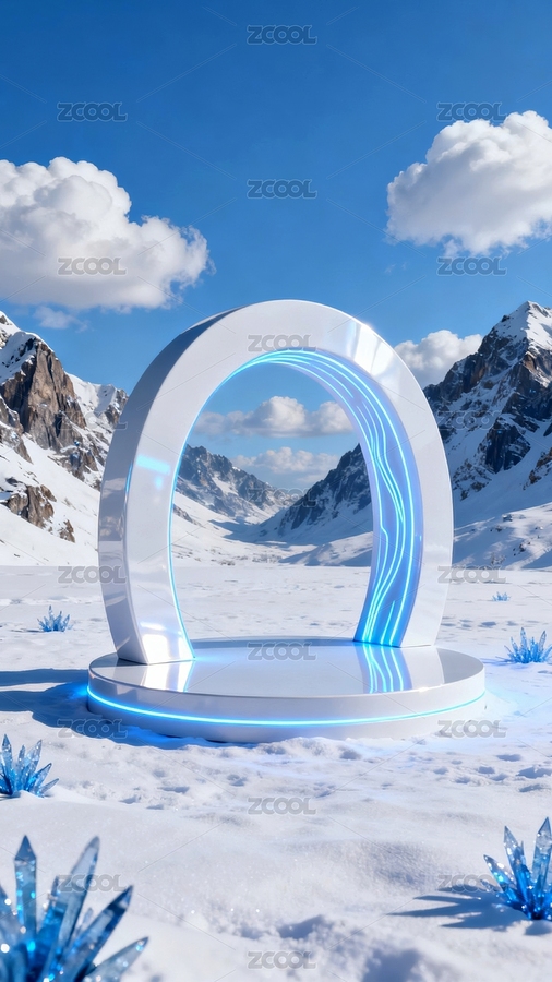 雪山圆形舞台未来科技感插图
