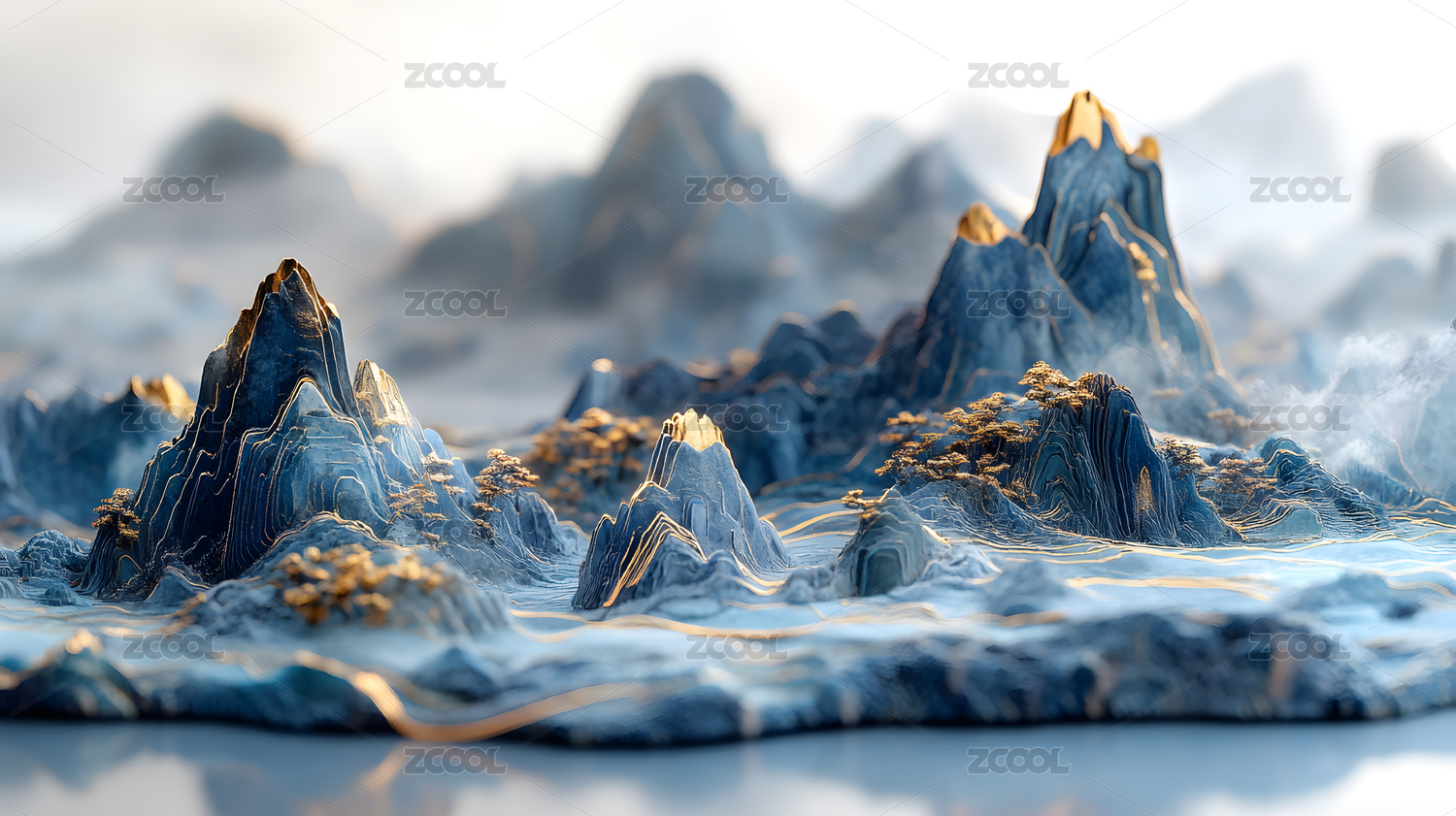 新中式高端蓝色山脉背景