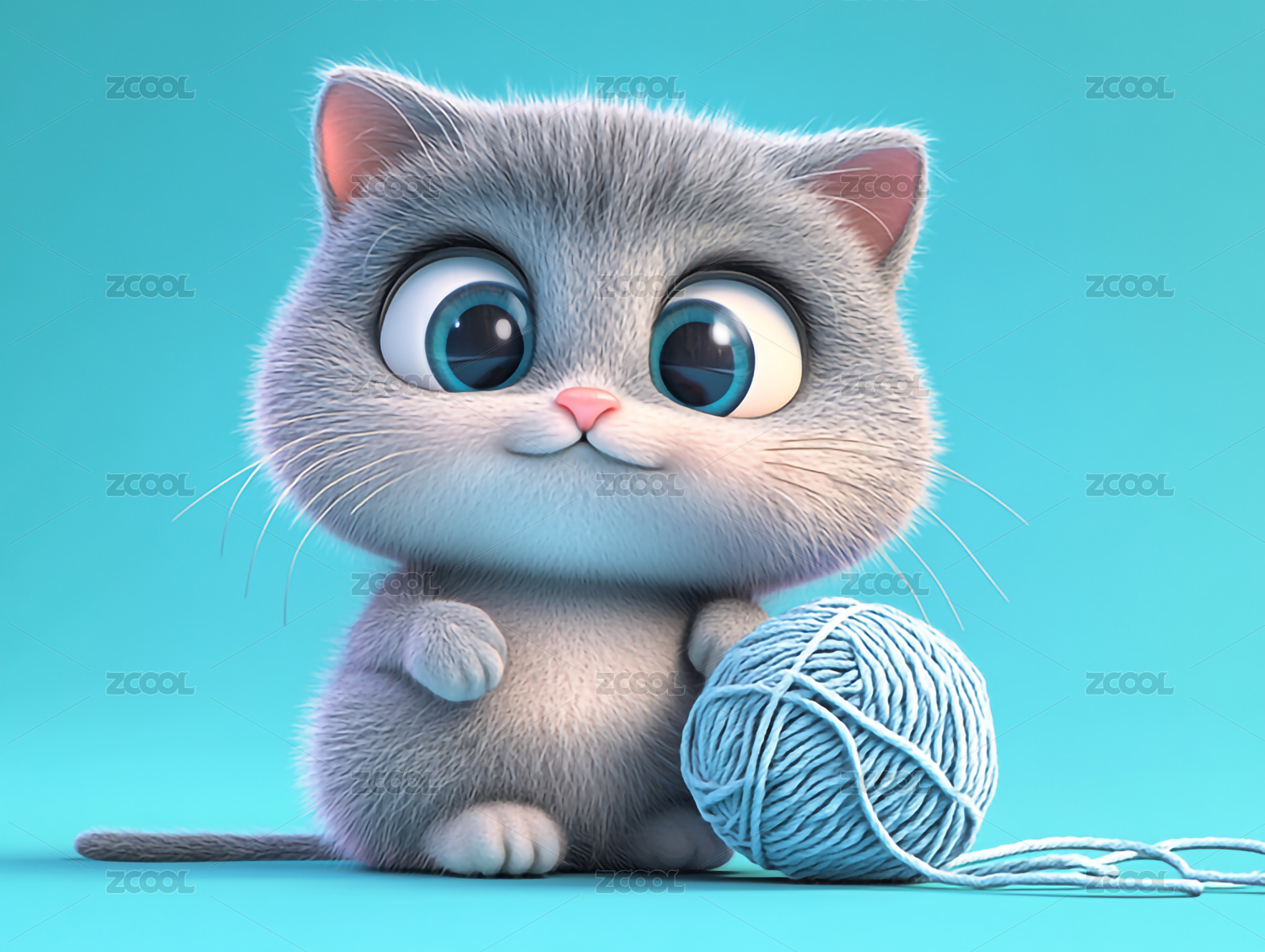 背景,艺术,蓝色,3D,渲染,插画,猫,可爱,卡通,草帽